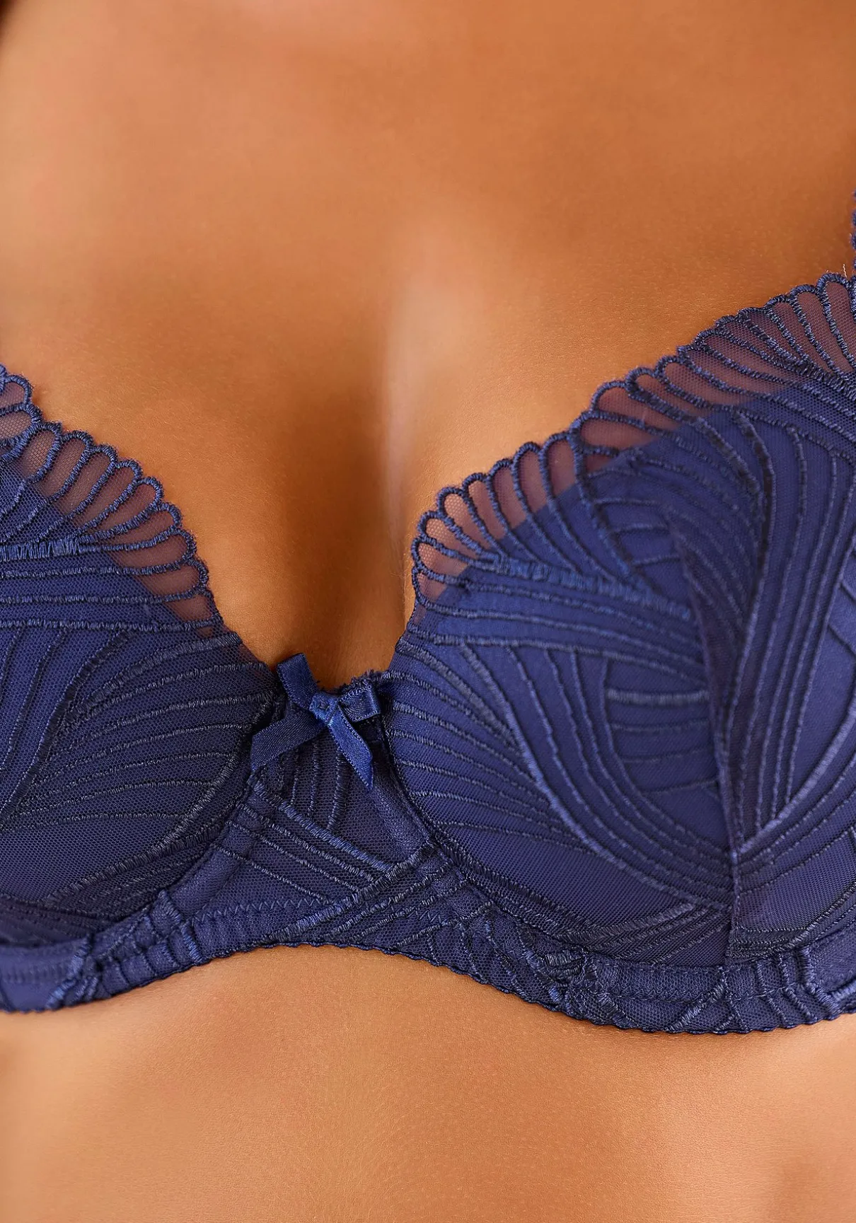Modischer Schalen-BH mit feiner Zierschleife in der vorderen Mitte. Leicht wattierte Cups überzogen mit feiner Spitze bis hoch in die Träger. Träger und Rückenverschluss sind individuell verstellbar. Mit passenden Unterteilen aus der gleichen Serie erhältlich. Mit Liebe & Leidenschaft in Hamburg kreiert. Reizwäsche. Verführerische Dessous. Spitzen-Dessous. Romantische Dessous. Verspielte Dessous. Aus 65% Polyamid, 20% Elasthan, 15% Polyester.