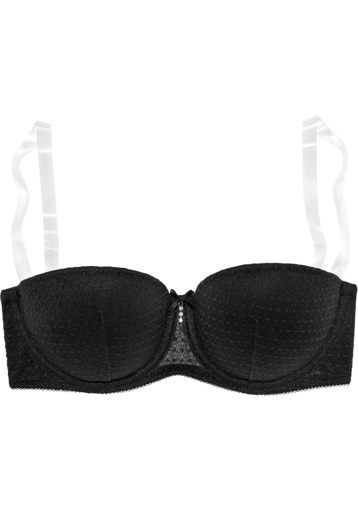 NUANCE: Schalen-BH mit transparenten, abnehmbaren Trägern. 2 Tragevarianten: Mit Trägern, ohne Träger. Mit Formbügel und nahtlos vorgeformten, leicht gefütterten Cups. Cups mit grafischer Jacquardspitze überzogen. Dekorative Schleife in der vorderen Mitte. Rutschfest durch eingearbeitete Silikonbänder. Träger und Rückenverschluss verstellbar. Sexy Dessous. Spitzen-Dessous. Romantische Dessous. Verspielte Dessous. Aus 61% Polyester, 34% Polyamid, 5% Elasthan.