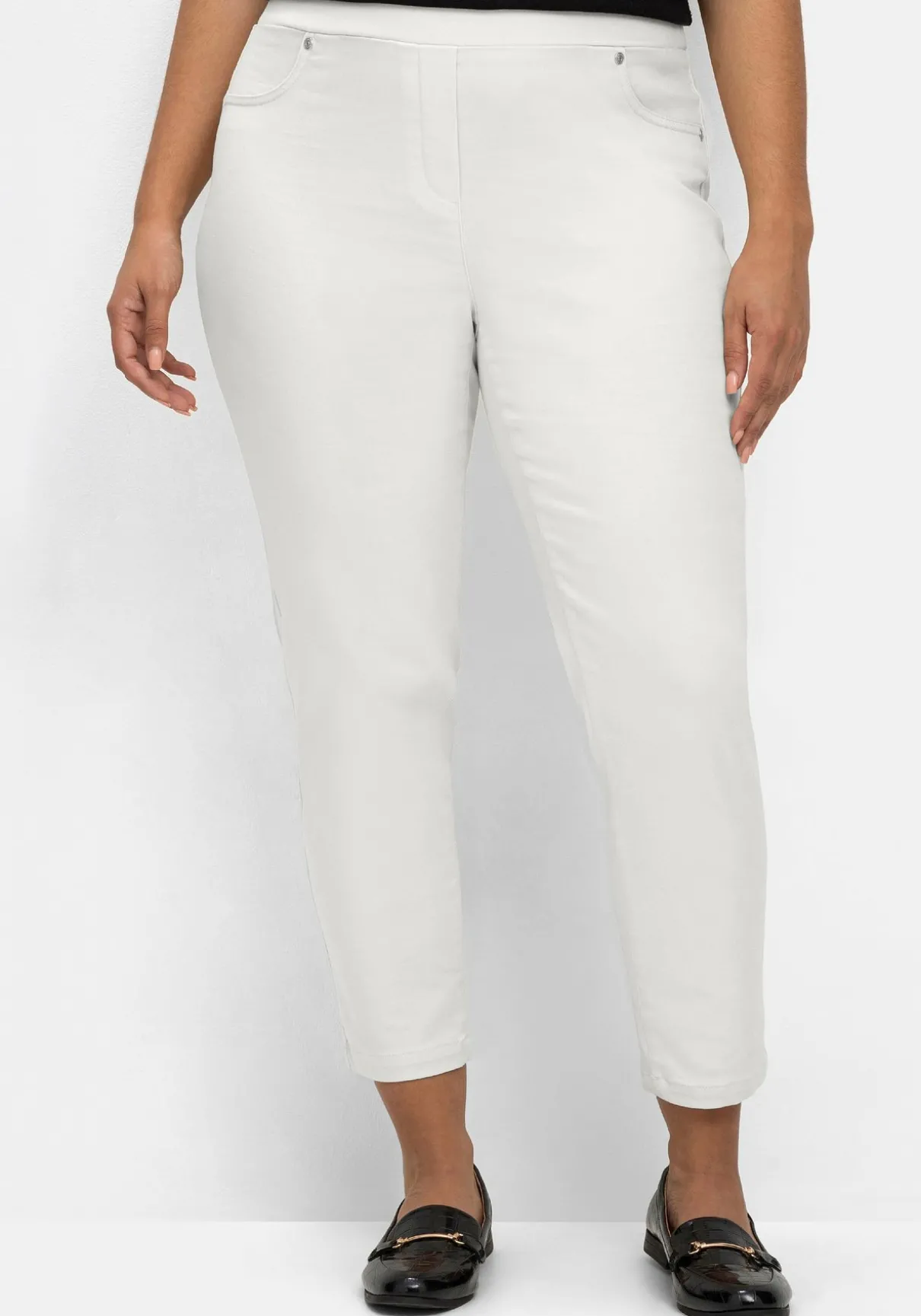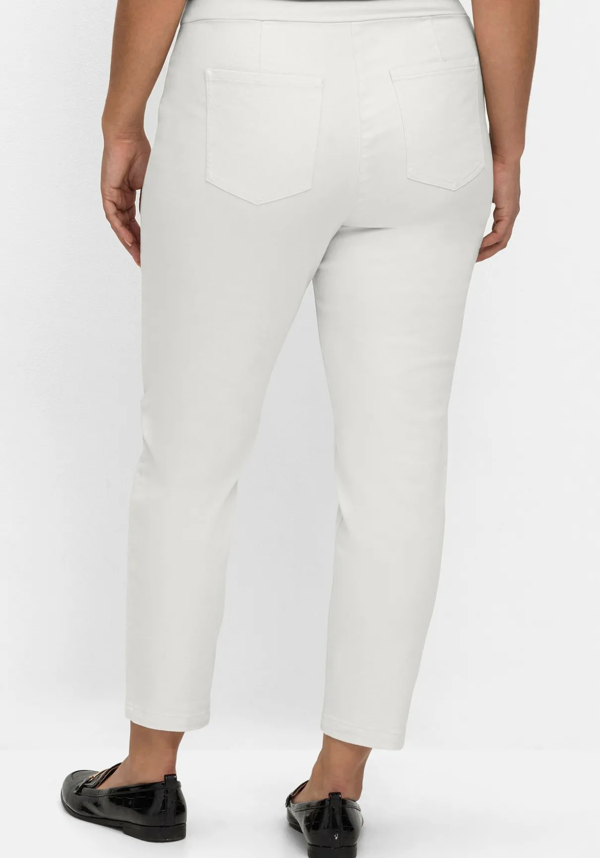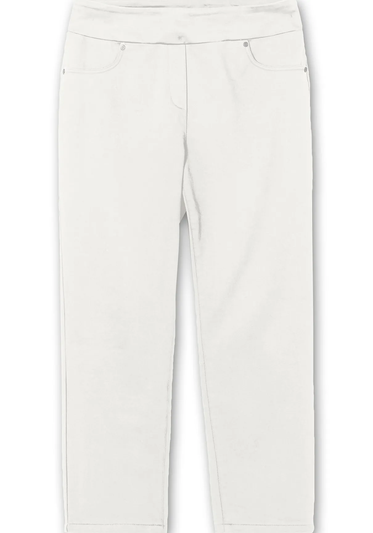 Stretchhose in schmaler Form. Durch den elastischen Schlupfbund sitzt die Hose sehr bequem. Ziernähte vorn und aufgesetzte Taschen hinten unterstreichen den gepflegten Look.