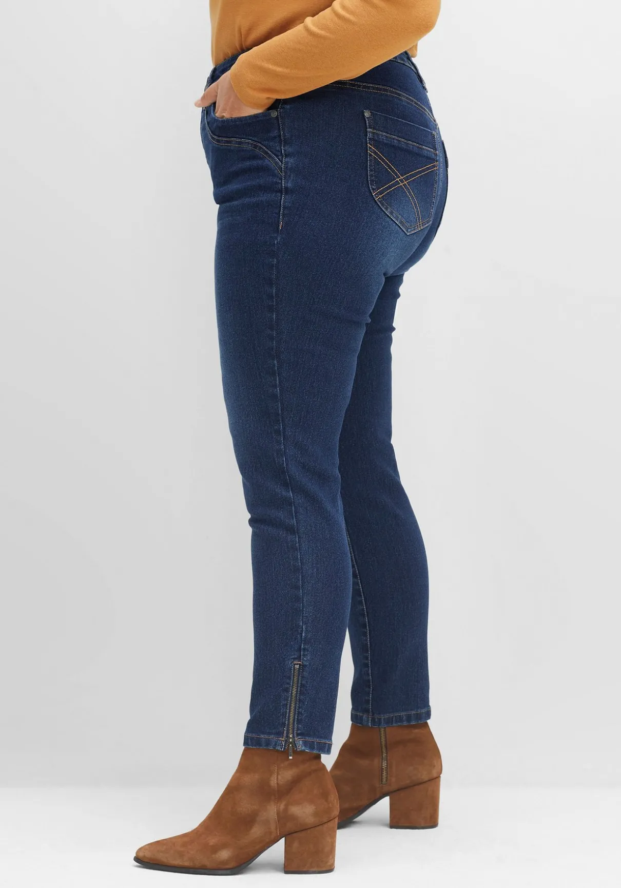 Schmale Jeans in knöchelbedeckender Länge. Markante Reißverschlüsse am Saumabschluss verleihen ihr modische Coolness. Dazu kommen eine individuelle Waschung und Catfaces für den dezenten Used-Look. Der Formbund ist mit Gürtelschlaufen gearbeitet, die klassischen fünf Taschen ergänzen den Style. Die Passe hinten gibt der Hose einen guten Sitz.