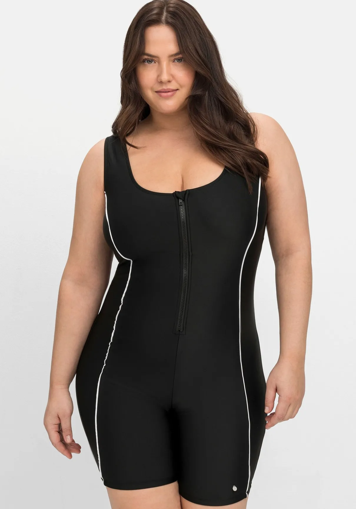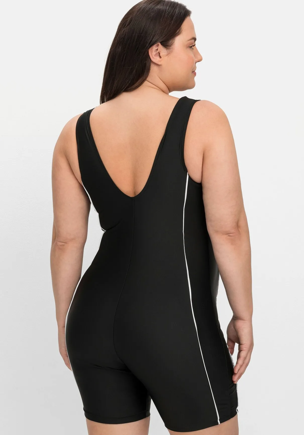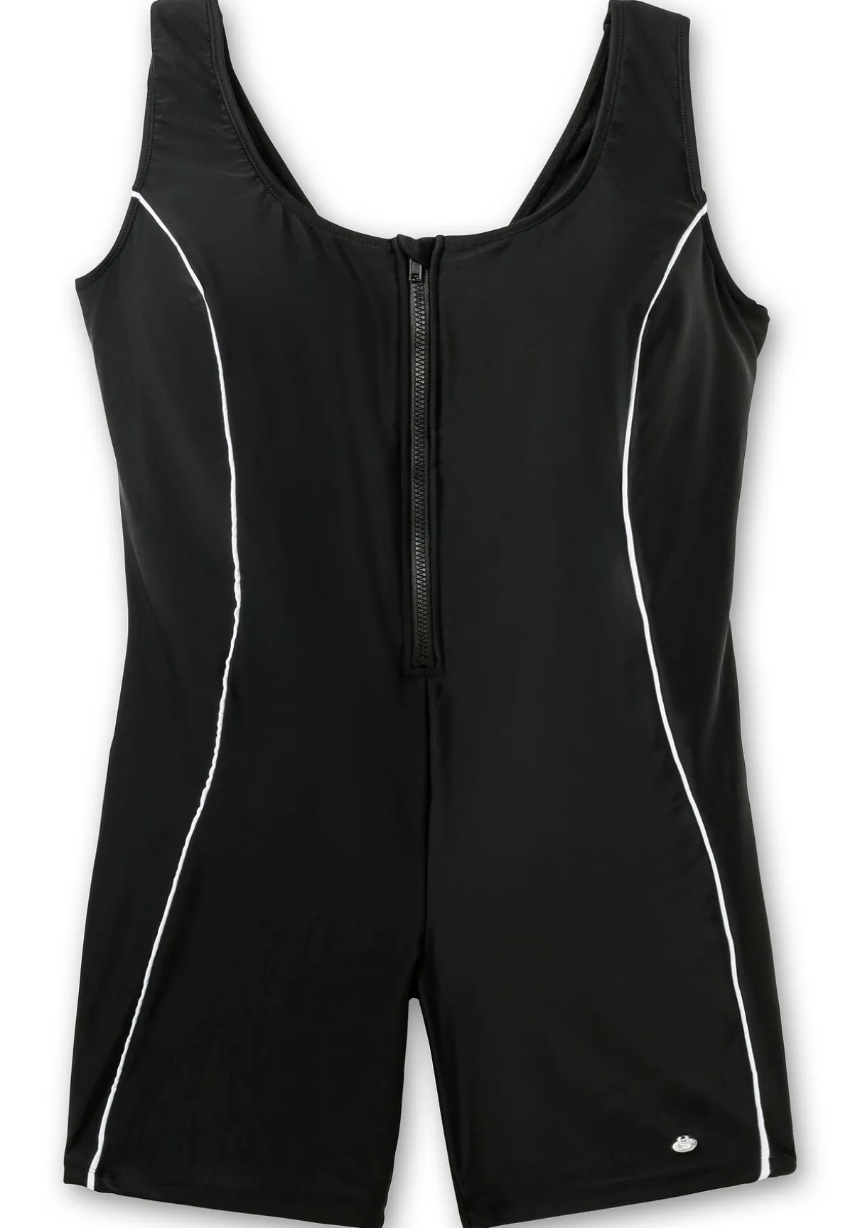 Schwimmanzug mit kurzem Bein. Für einen leichten Einstieg ist der sportive Badeanzug am runden Ausschnitt mit einem Reißverschluss versehen. Vorn und hinten ist das Material ab Unterbrust zusätzlich gefüttert. Ein dezentes Metalllabel schmückt den linken Beinabschluss, Kontrastpaspeln zeichnen eine schmale Linie und sind gleichzeitig ein dynamisches Finish. Das hochwertige elastische Material gibt dir genügend Bewegungsfreiheit und unterstützt dein aktives Schwimmtraining.