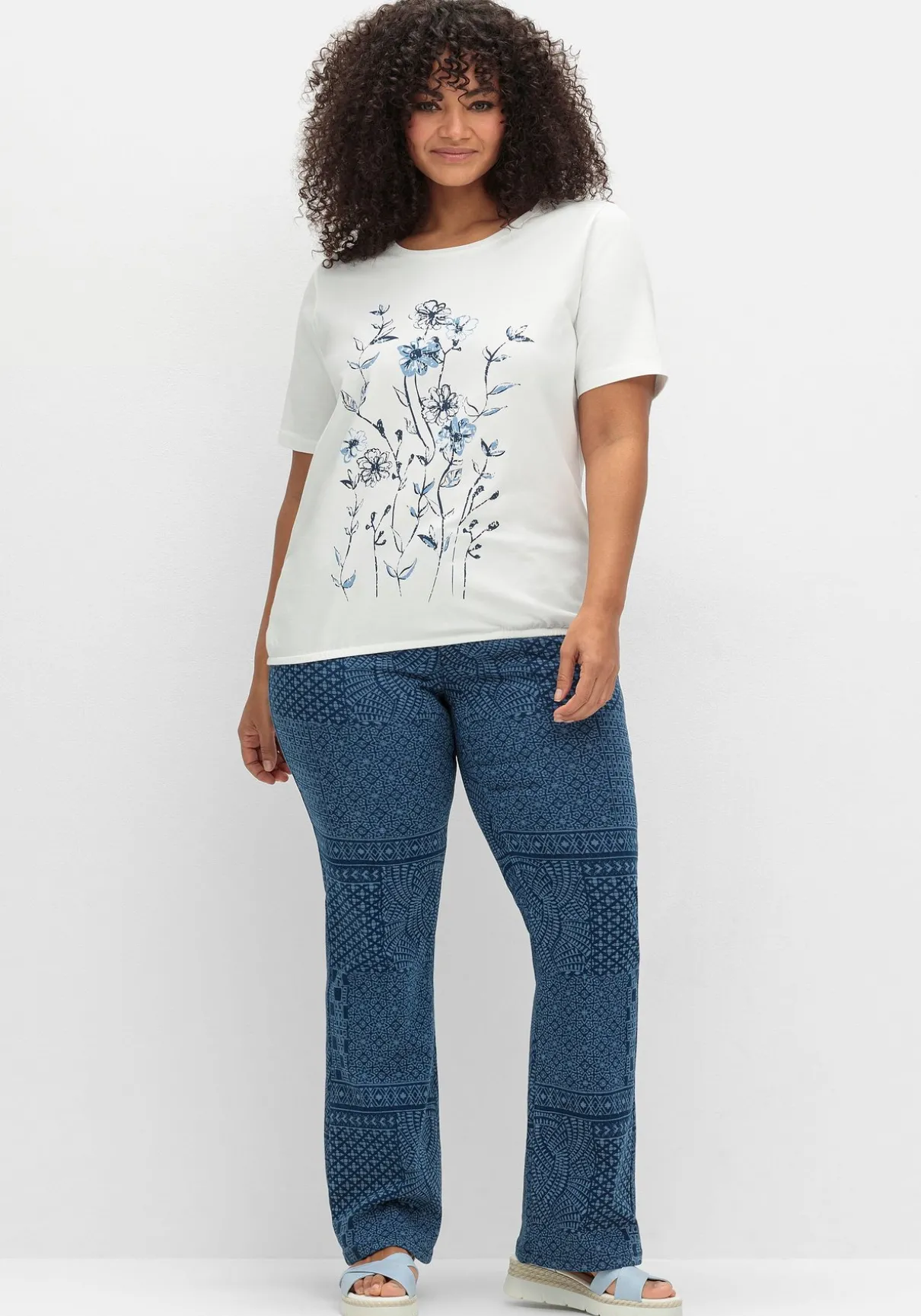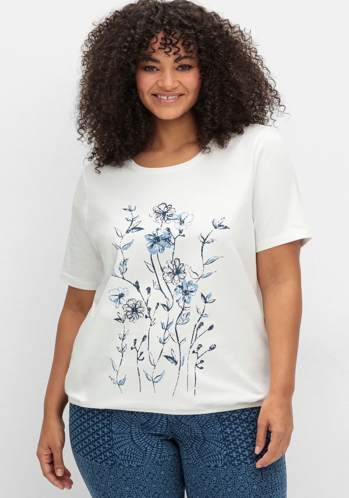 Shirt mit Rundhalsausschnitt. Vorn erhält das Shirt durch den filigranen Blumendruck eine feminine Note. Der Gummizug am Saum sorgt für mehr Weite rund um den Bauchbereich.