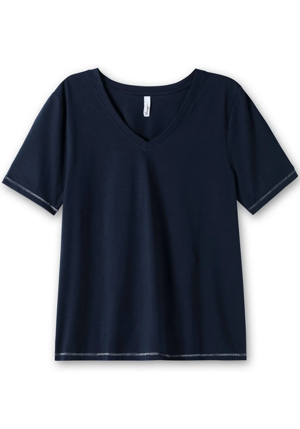 Shirt mit Wordingprint. Der kleine glitzernde Druck hinten auf der linken Schulter verleiht dem schlichten Oberteil das besondere Etwas. Glitzernde Nähte an Ärmel- und Saumabschluss sind dazu eine feminine Ergänzung. Ansonsten zeigt sich das Shirt mit klassischem V-Ausschnitt und einem etwas länger geschnittenem Ärmel.