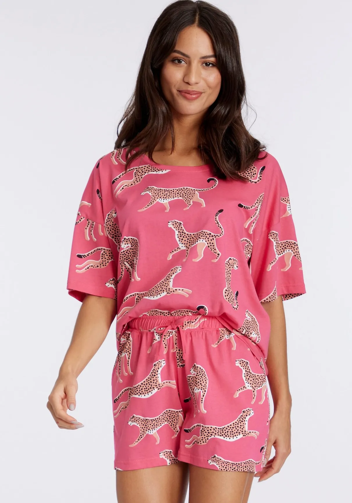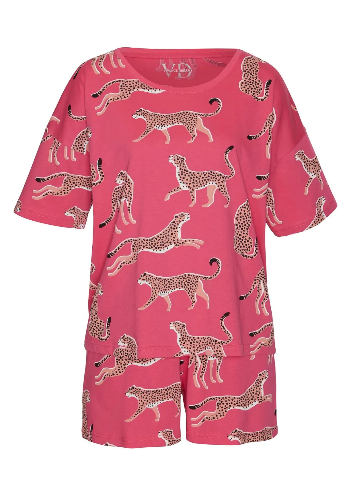 Mit designstarkem Animalprint: Shorty von Vivance Dreams. T-Shirt mit Rundhalsausschnitt und überschnittenen Schulternähten. Shorts mit Dehnbund und seitlichen Eingrifftaschen. Bequeme Passform. Angenehm weiche Jerseyqualität aus 60% Baumwolle, 40% Polyester.