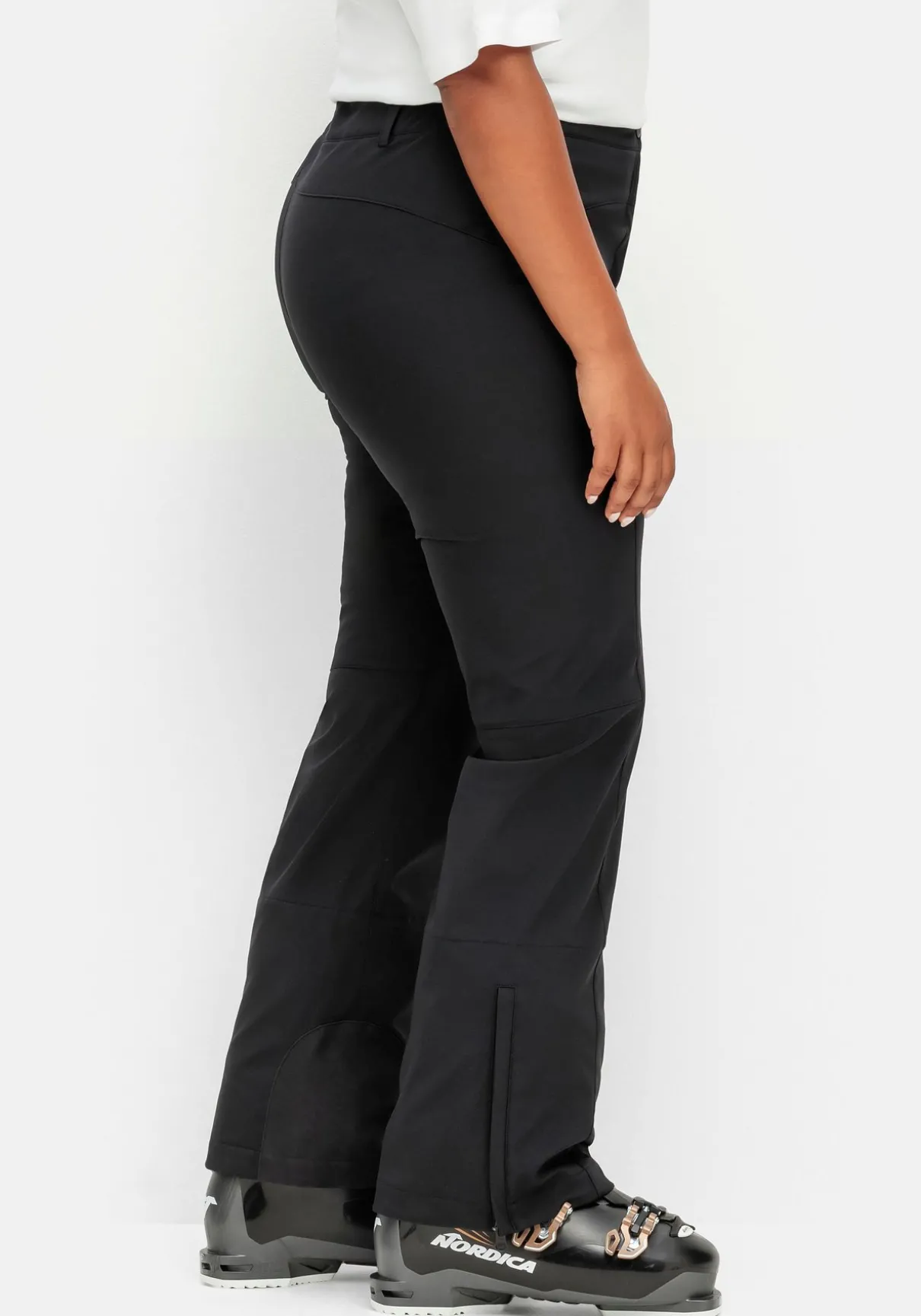Skihose aus Softshell, in atmungsaktiver, wasser- und windabweisender Qualität. Der Bund ist mit Gürtelschlaufen ausgestattet, seitliche Gummizugeinsätze garantieren einen bequemen Sitz. Praktisch ist der Reißverschluss am Hosensaum. Der Kantenschutz und die verstärkte Beininnenseite sorgen dafür, dass die Skier hier keine Spuren hinterlassen. Ein innenliegender Schneefang mit Antirutschgummi ist so geformt, dass das Hosenbein optimal mit dem Skischuh abschließt. Die Hose besitzt keine Taschen.