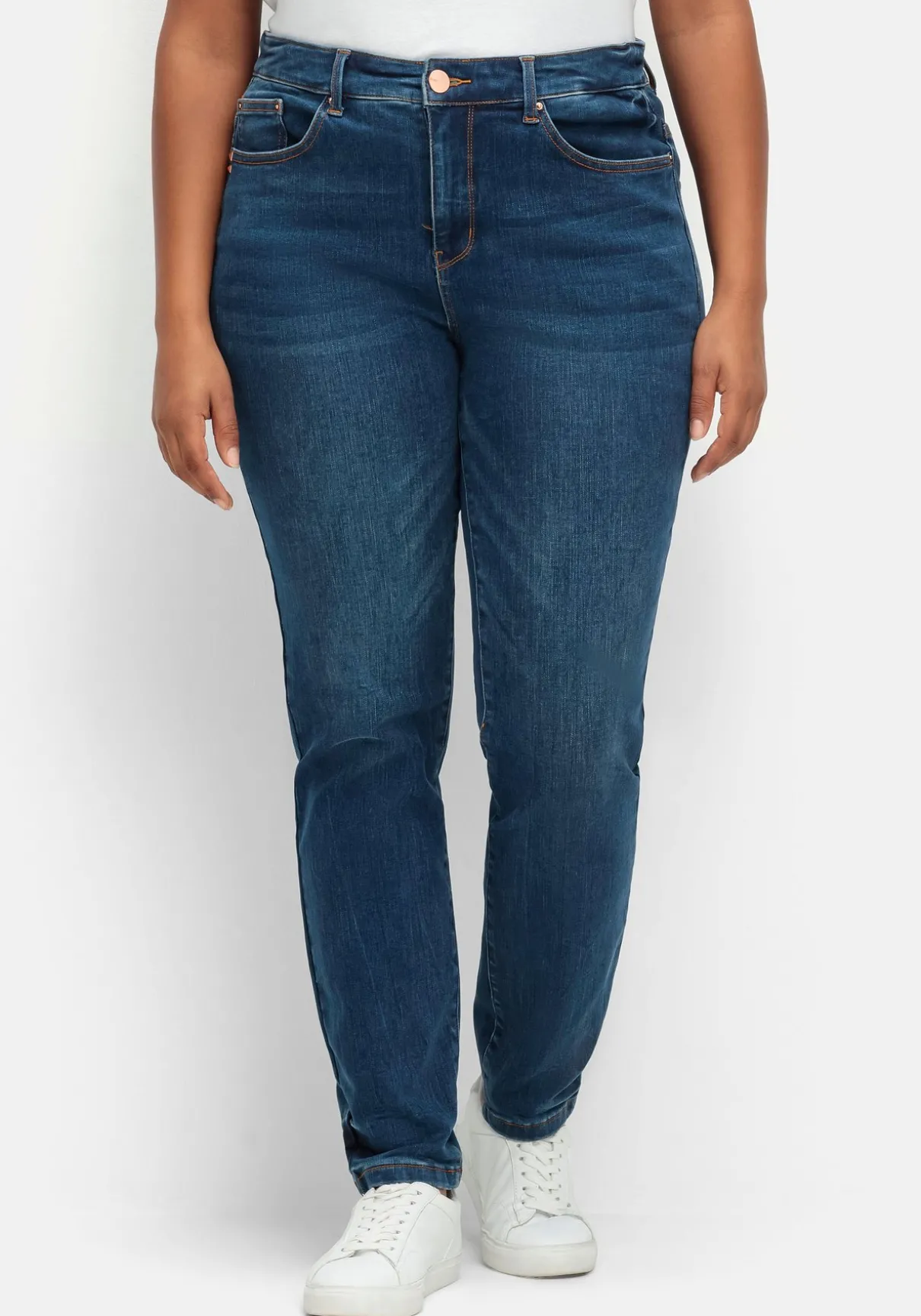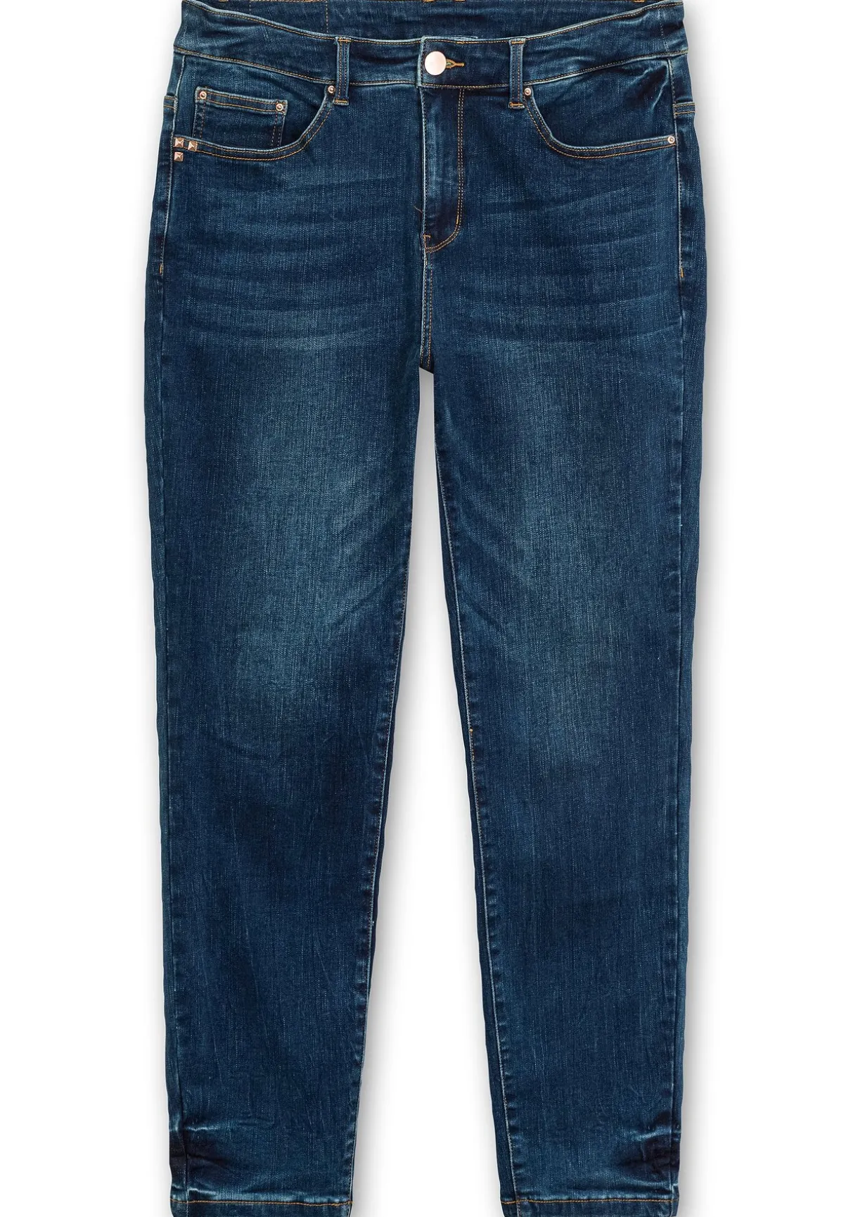 Für einen rundum knackigen Sitz sorgt diese Skinny Stretch-Jeans in extra schmaler Form. Der innovative Bodyforming-Effekt lässt dabei eine zuverlässig glatte und gestraffte Silhouette entstehen. Lässig wirken die Wasch- und Used-Effekte, als dezente Hingucker dienen die rosegoldfarbenen Metall-Accessoires. In beliebter 5-Pocket-Form.