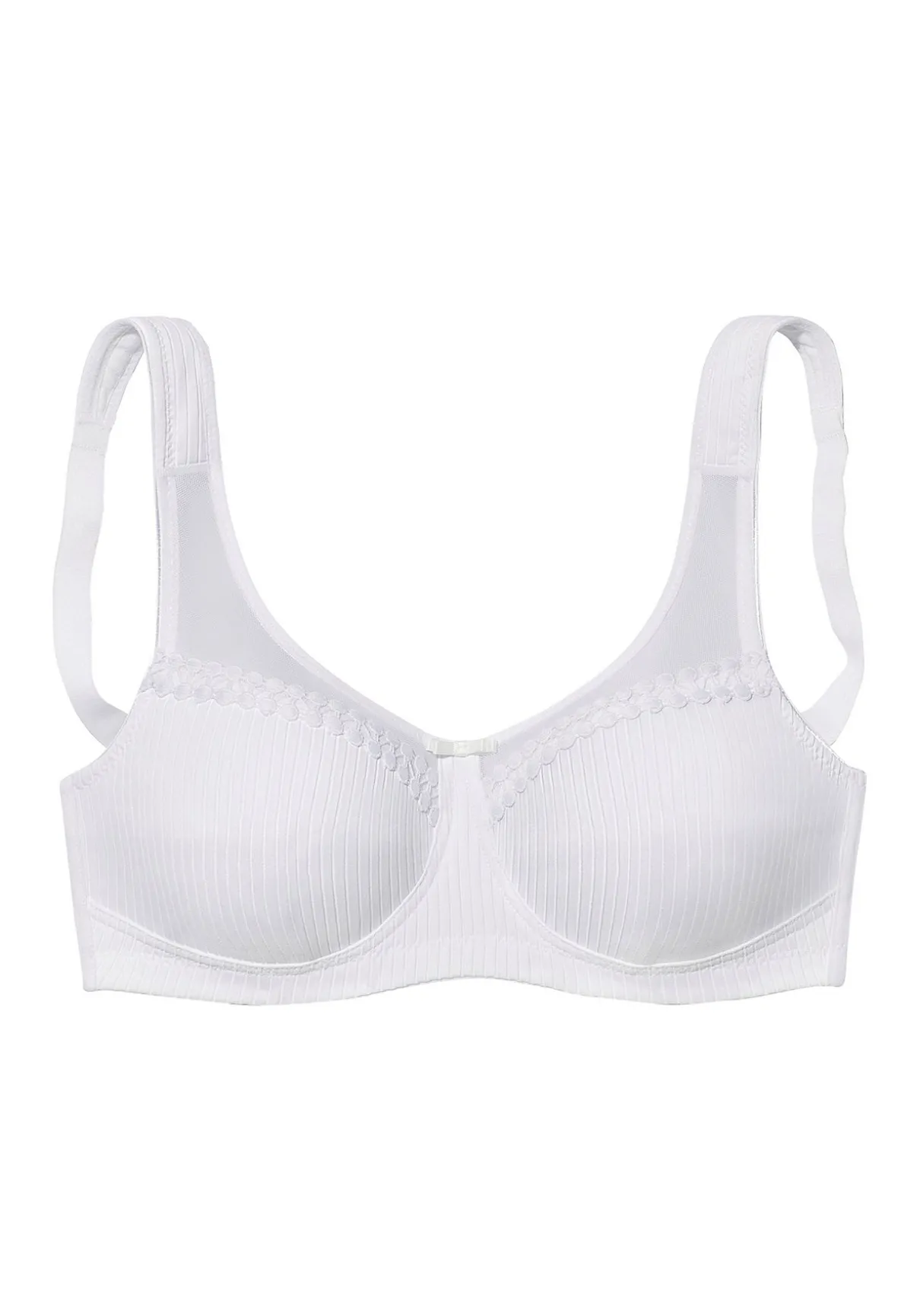 Femininer Soft-BH, enthält recyceltes Polyamid. Feine Spitzenborte und Mesheinsätze am Obercup. Träger und Rückenverschluss sind individuell verstellbar. Passende Unterteile aus der gleichen Serie erhältlich. Klassische Dessous. Bequeme Alltags-Dessous. Modische Dessous. Obermaterial: 81% Polyamid, 11% Elasthan, 5% Polyester, 3% Baumwolle.