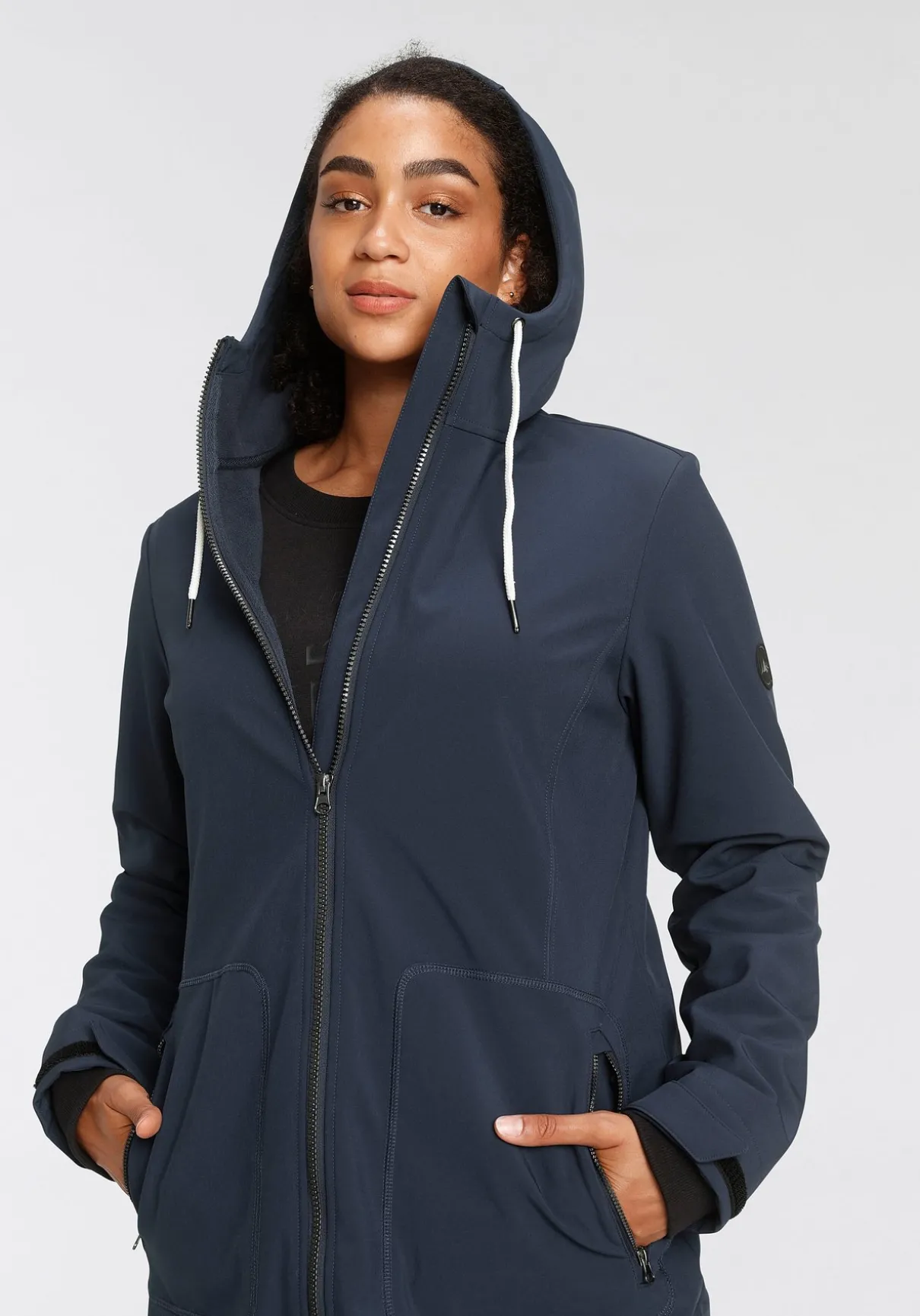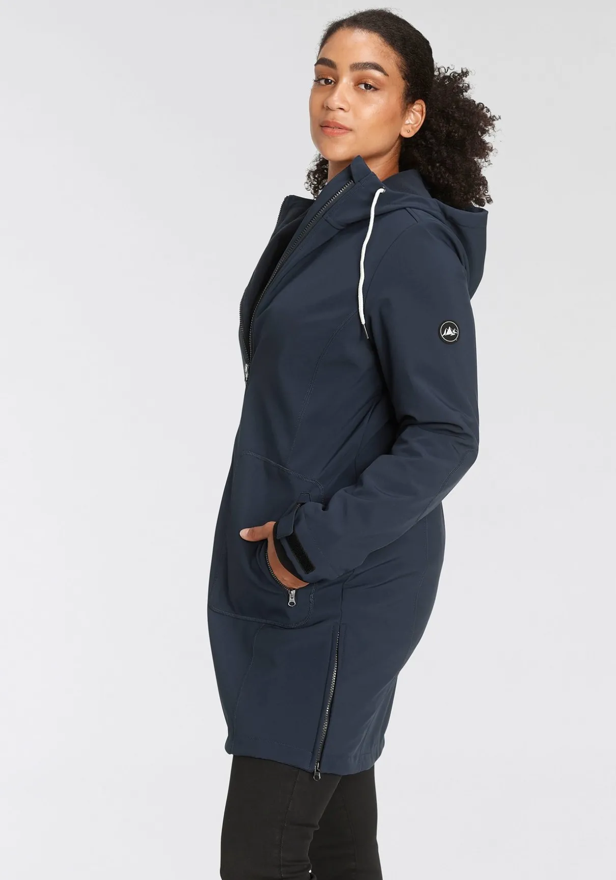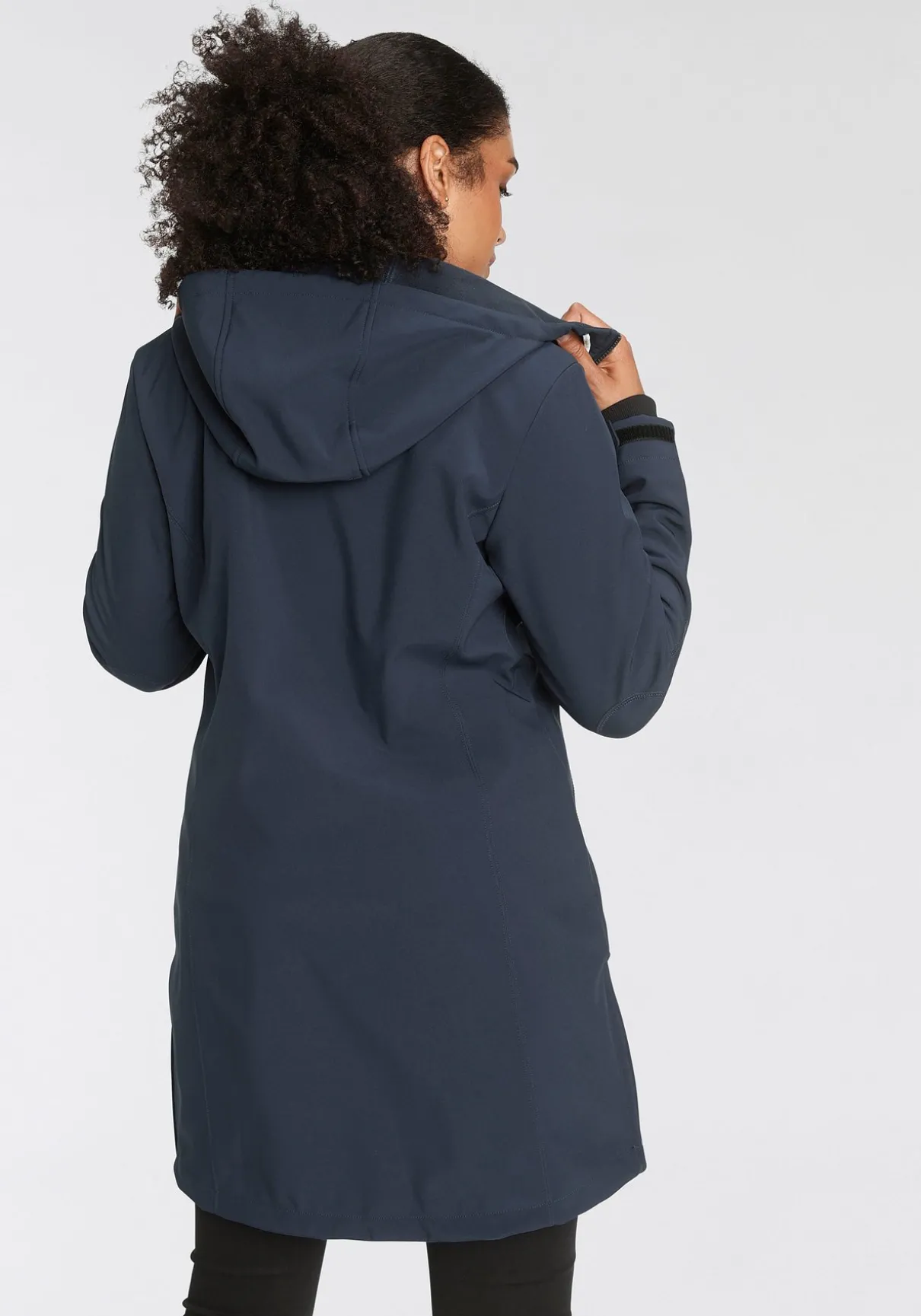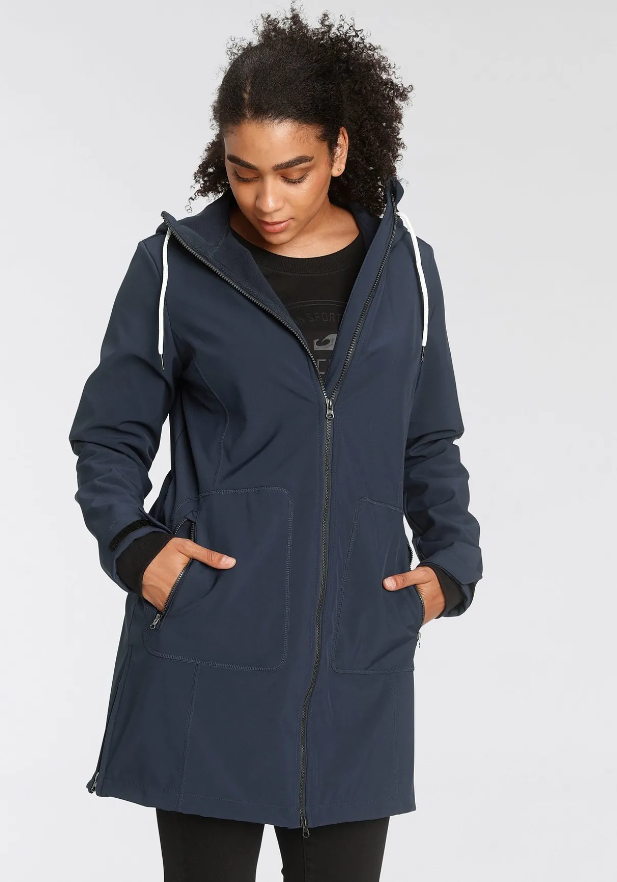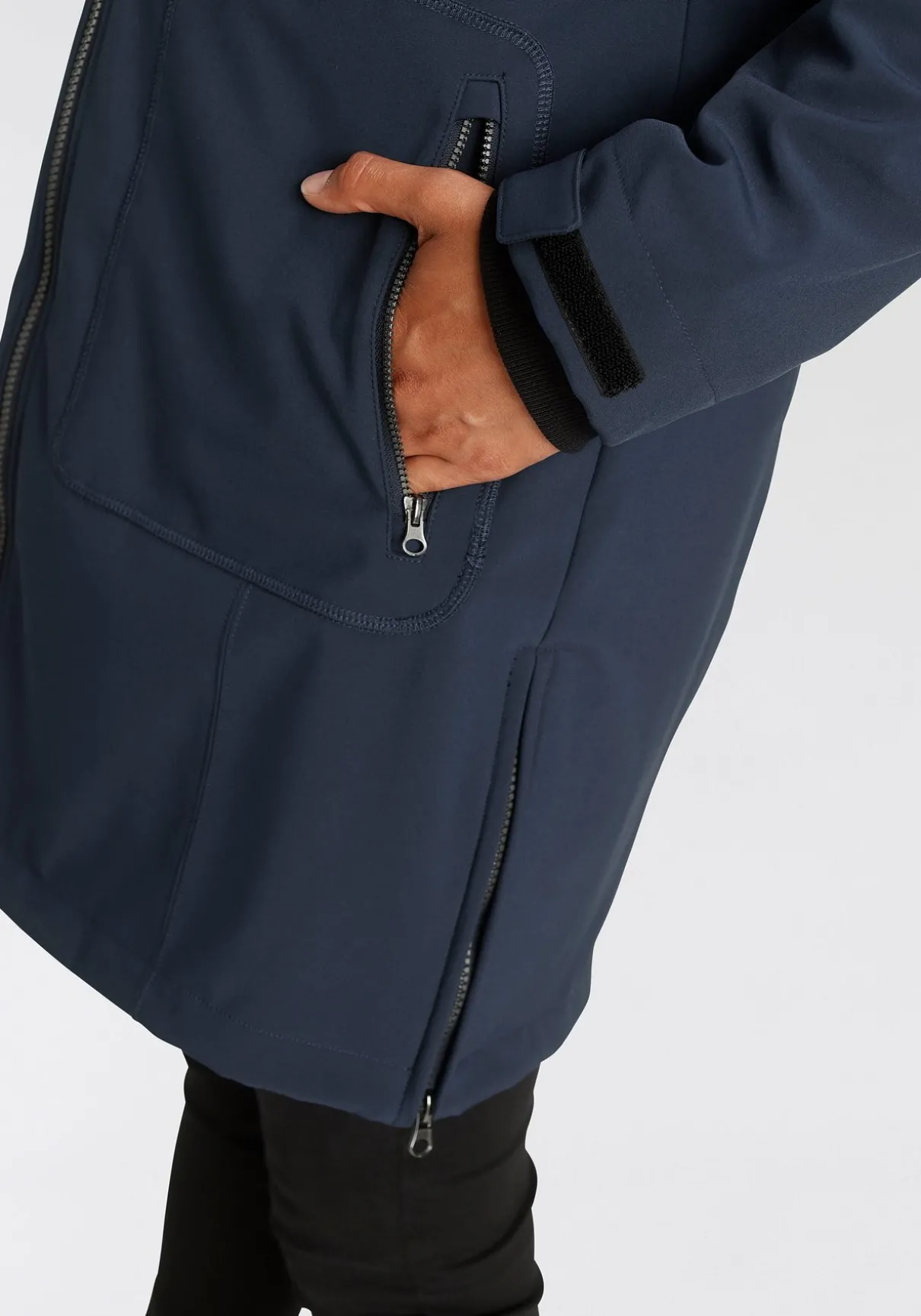 Mit Kapuze. Seitlich aufgesetzte Taschen mit Reißverschluss. Zwei-Wege-Reißverschluss. Ellbogen-Patches. Seitliche Schlitze mit Reißverschlüssen. Kleines Logo-Label auf einem Ärmel und am Reißverschluss. Atmungsaktiv, winddicht und wasserabweisend. Mit hohem Stretch-Anteil und weichem Fleecefutter.