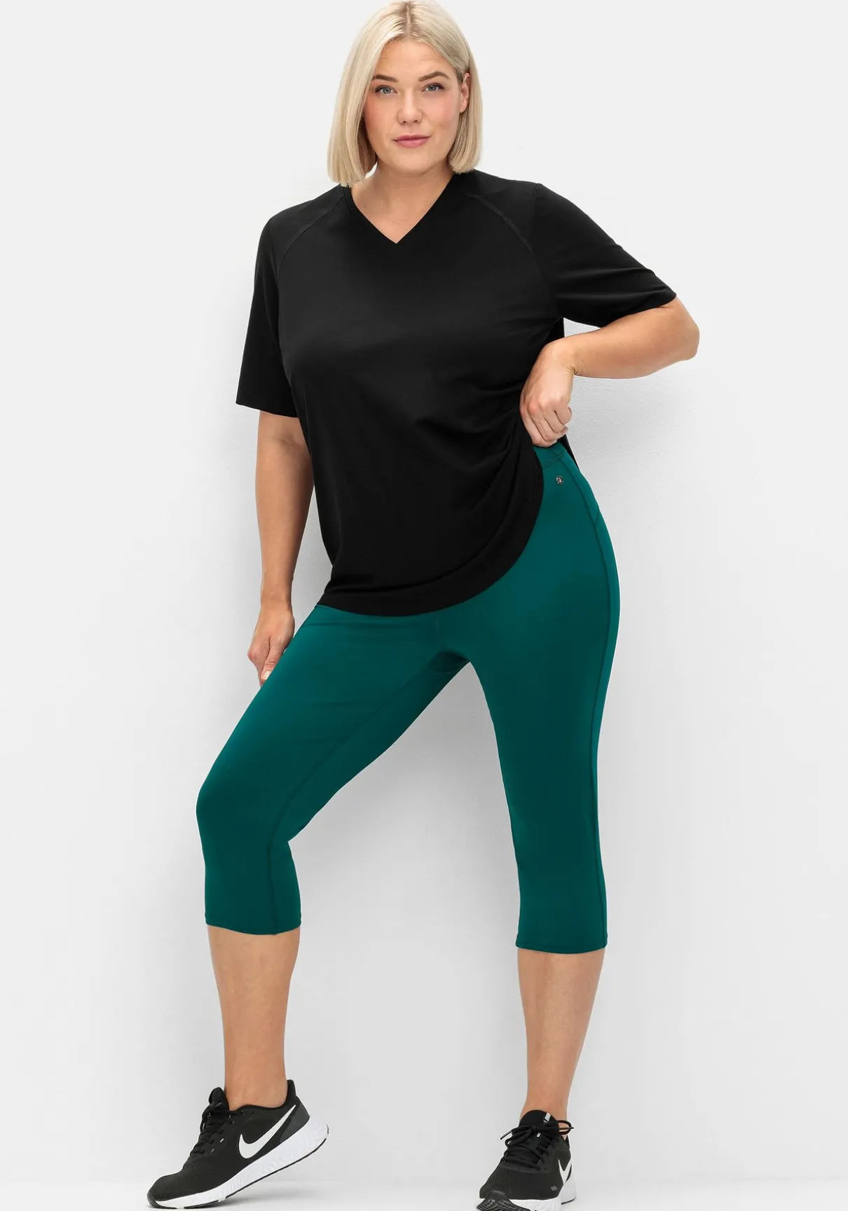 Der schmale, kniebedeckende Capri-Schnitt betont die feminine Silhouette und macht alle Aktivitäten mit.