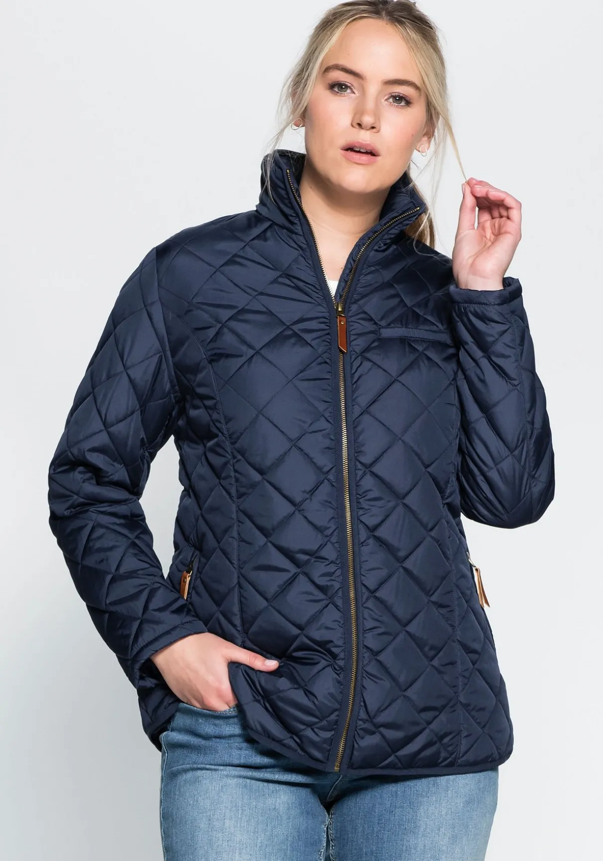 Diese Steppjacke verdankt ihren sportiv-femininen Look nicht nur der modischen Rautensteppung, sondern auch ihren besonderen Details wie den Reißverschlussanhängern aus kontrastfarbenem Lederimitat. Der hochschließende Stehkragen schützt vor Wind und Wetter und macht die Jacke ideal für die Übergangszeit. Mit kleiner, paspelierter Brusttasche sowie Innentasche und seitlichen Eingrifftaschen mit Reißverschluss. Die Innentasche eignet sich perfekt zum bequemen Verstauen des Smartphones.