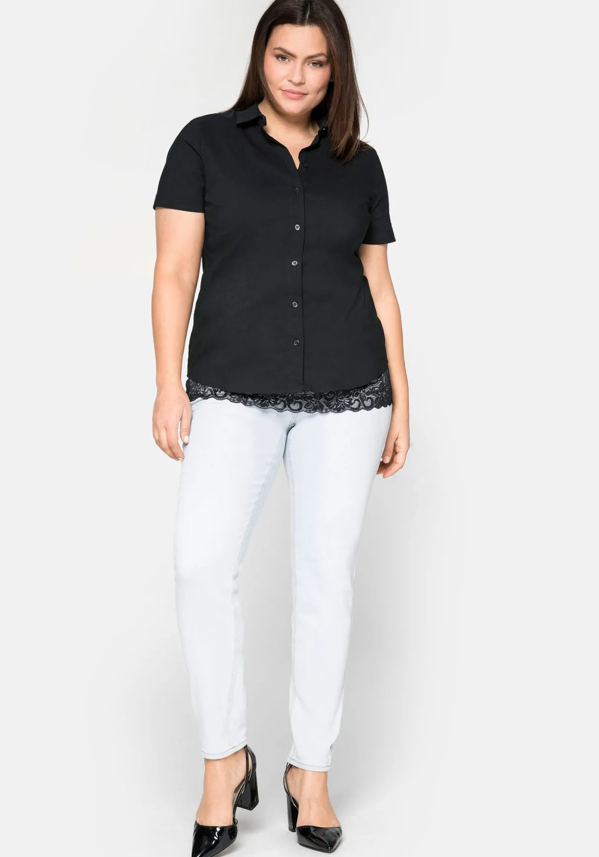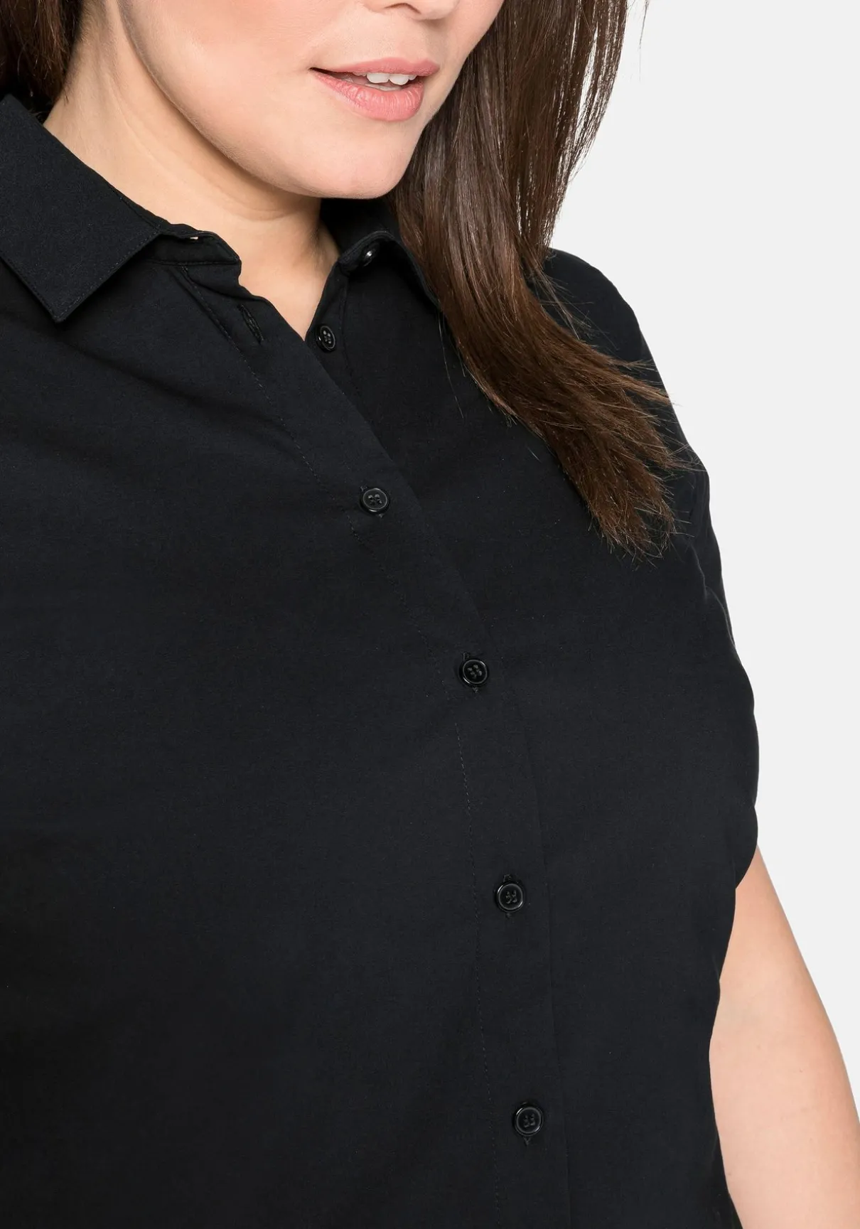 Unverzichtbarer Kombipartner: Die kurzärmlige Bluse in zeitlosem Design passt zu jedem Look und jedem Stil. Der Klassiker überzeugt mit schmaler Knopfleiste und Blusenkragen..