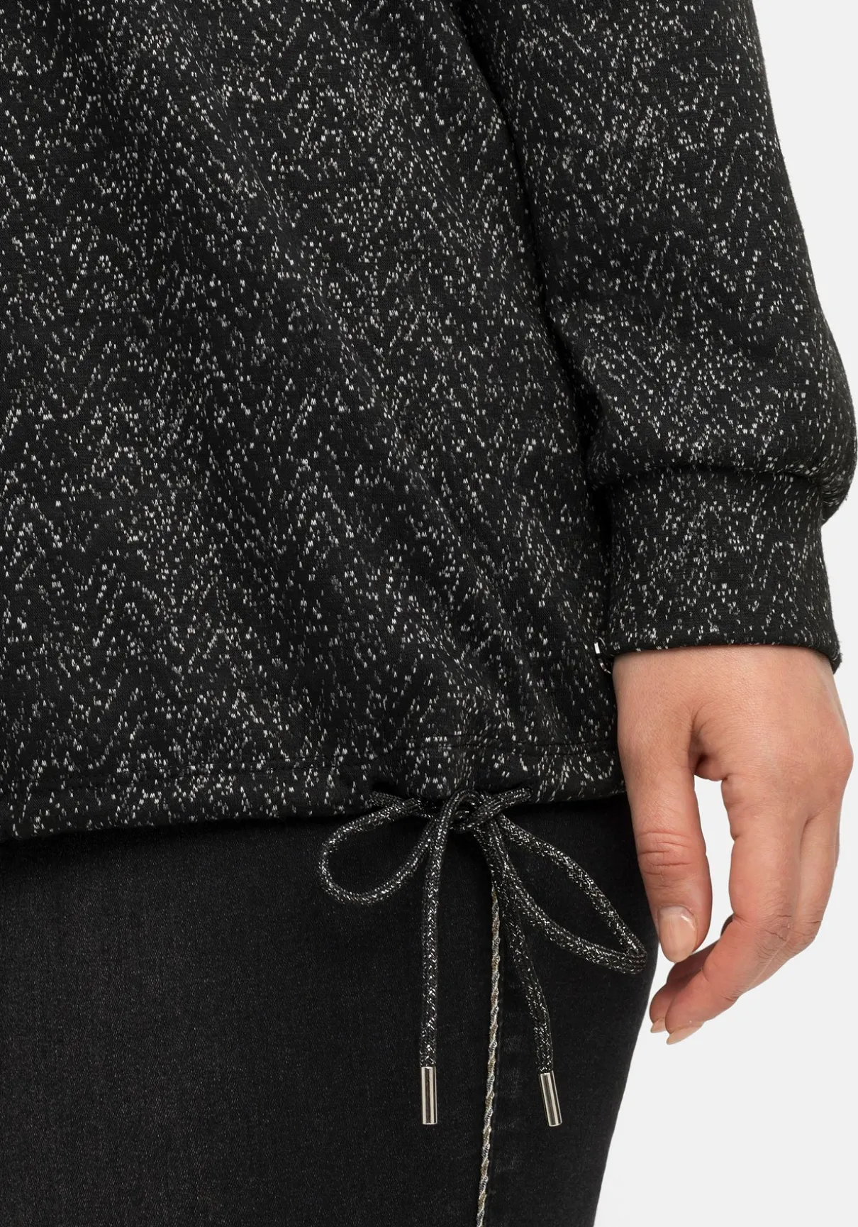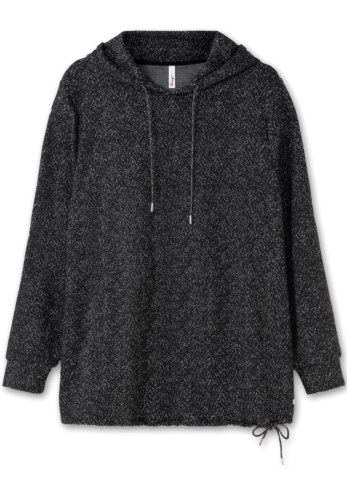 Sweatshirt in Salz-und-Pfeffer-Optik. Der typische Hoodie-Look ist mit einem Tunnelzug an der Kapuze und am Saum gestaltet