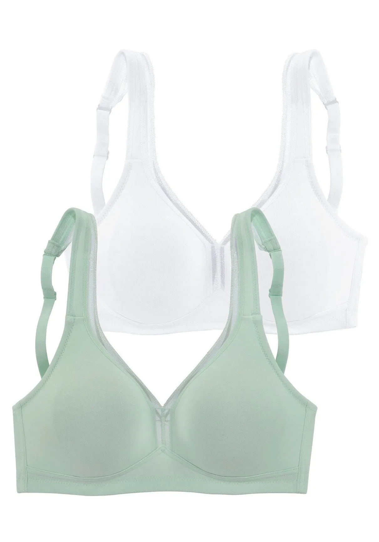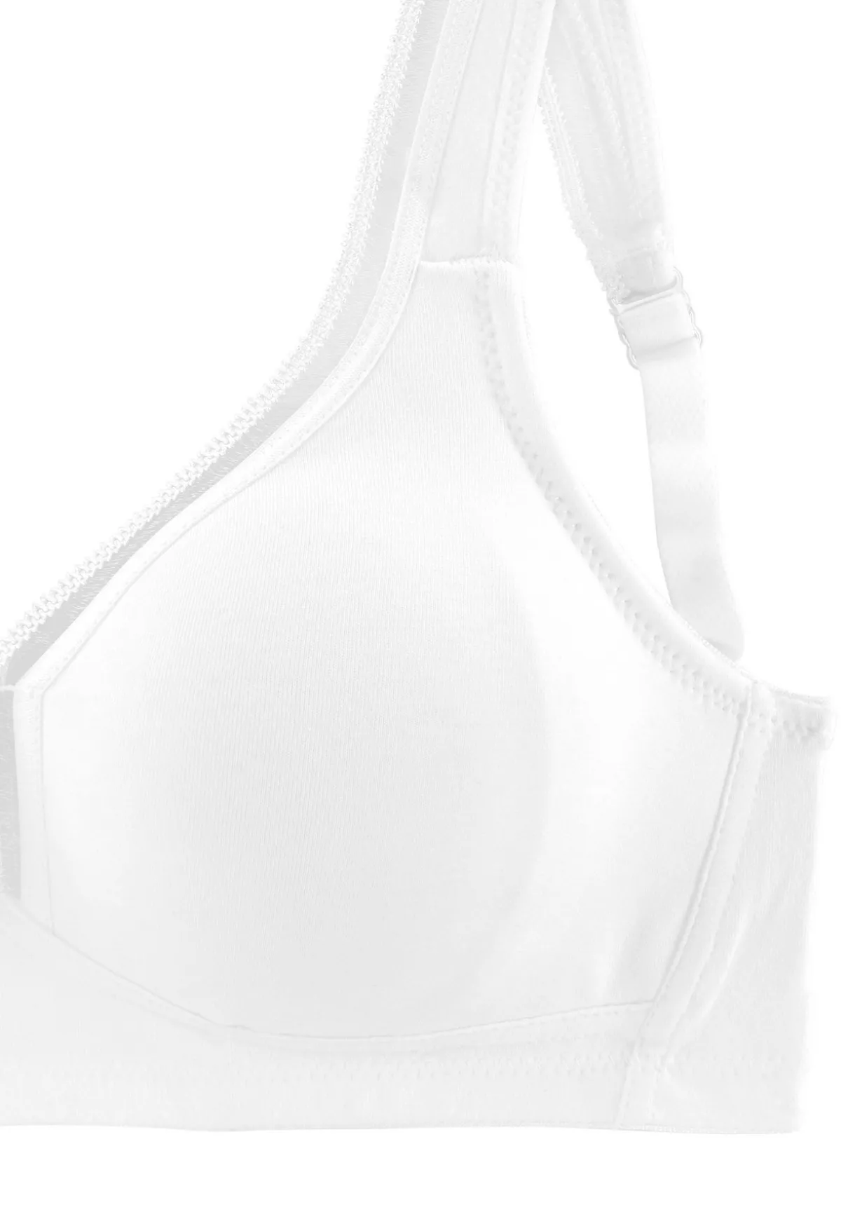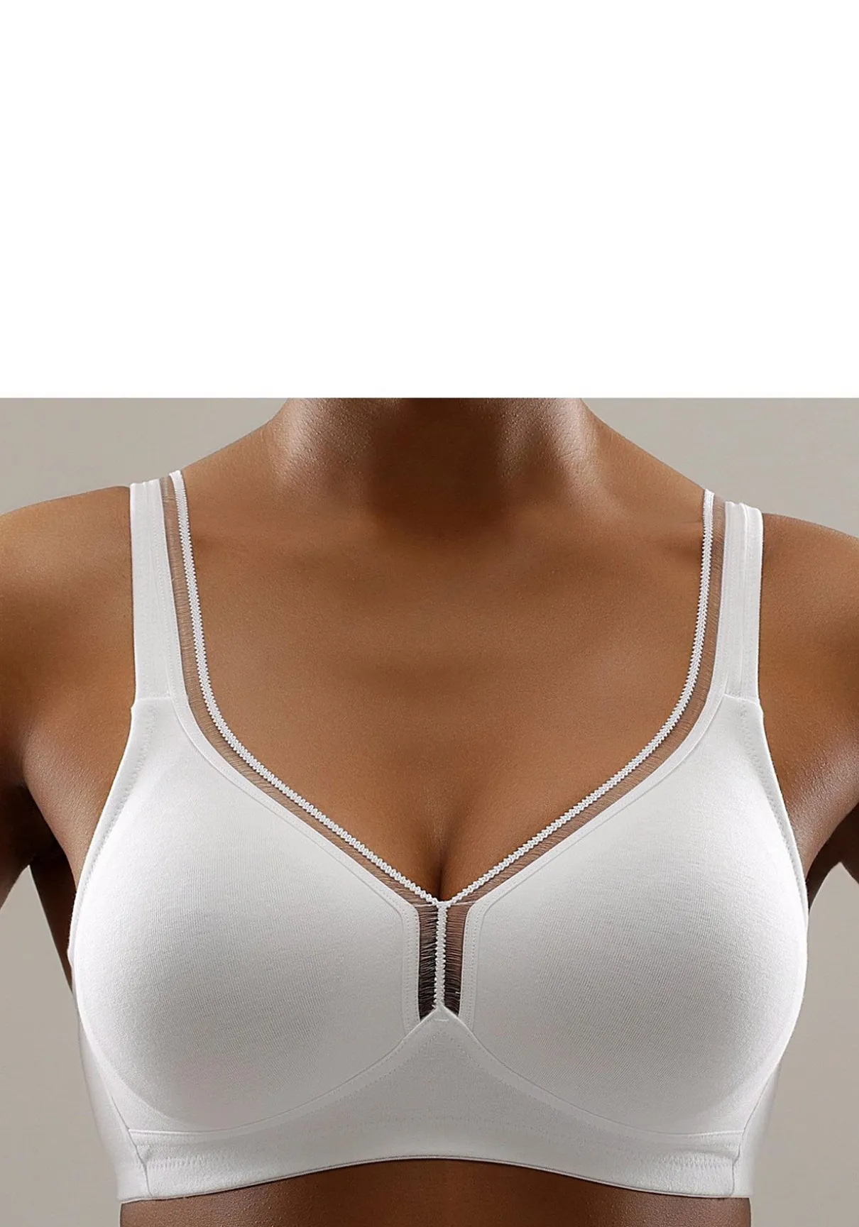 Der bequeme T-Shirt BH ohne Bügel von Petite Fleur schmiegt sich sanft der Haut an und vereint pures Design mit optimaler Passform. Die nahtlos vorgeformten Cups (ohne Wattierung) umschließen die Brust sicher und ermöglichen gleichzeitig ein besonders angenehmes Tragegefühl. Die bequeme Baumwollqualität sorgt für ein samtweiches Gefühl auf der Haut.Eine hübsche Zierkante am Dekoleté verleiht dem zeitlos schlichten Look des Petite Fleur BHs eine besondere Note. Die elastischen und verstellbarenTräger sowie der verstellbare Rückenverschluss sorgen für einen bequemen Sitz. Toller Mieder-BH im praktischen 2er Pack aus 93% Baumwolle und 7% Elasthan. Klassische Dessous. Bequeme Alltags-Dessous. Modische Dessous. BHs sind nicht trocknergeeignet, da die Versteller und Ringe durch die Hitze beschädigt werden und brechen.