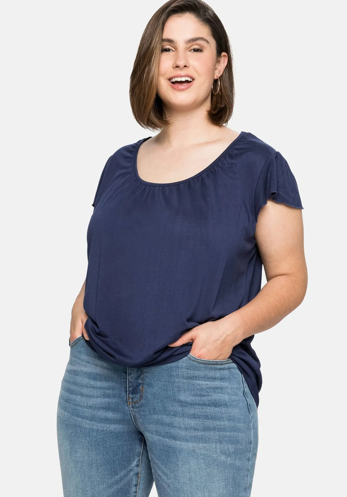 T-Shirt mit Rundhalsausschnitt. Die weich fallenden Flügelärmel in Kombination mit dem breiten Bund am Saum verleihen dem Shirt einen femininen und zugleich legeren Fit.