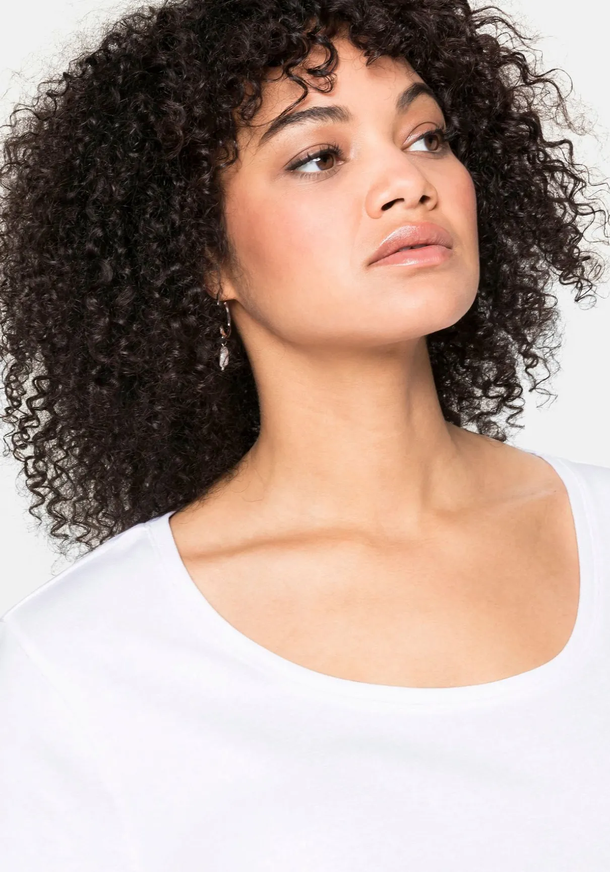 T-Shirt mit etwas tieferem Rundhalsausschnitt. Der länger geschnittene Ärmel fällt locker über die Oberarme und macht aus dem Shirt ein feminines Kleiderschrank-Essential.