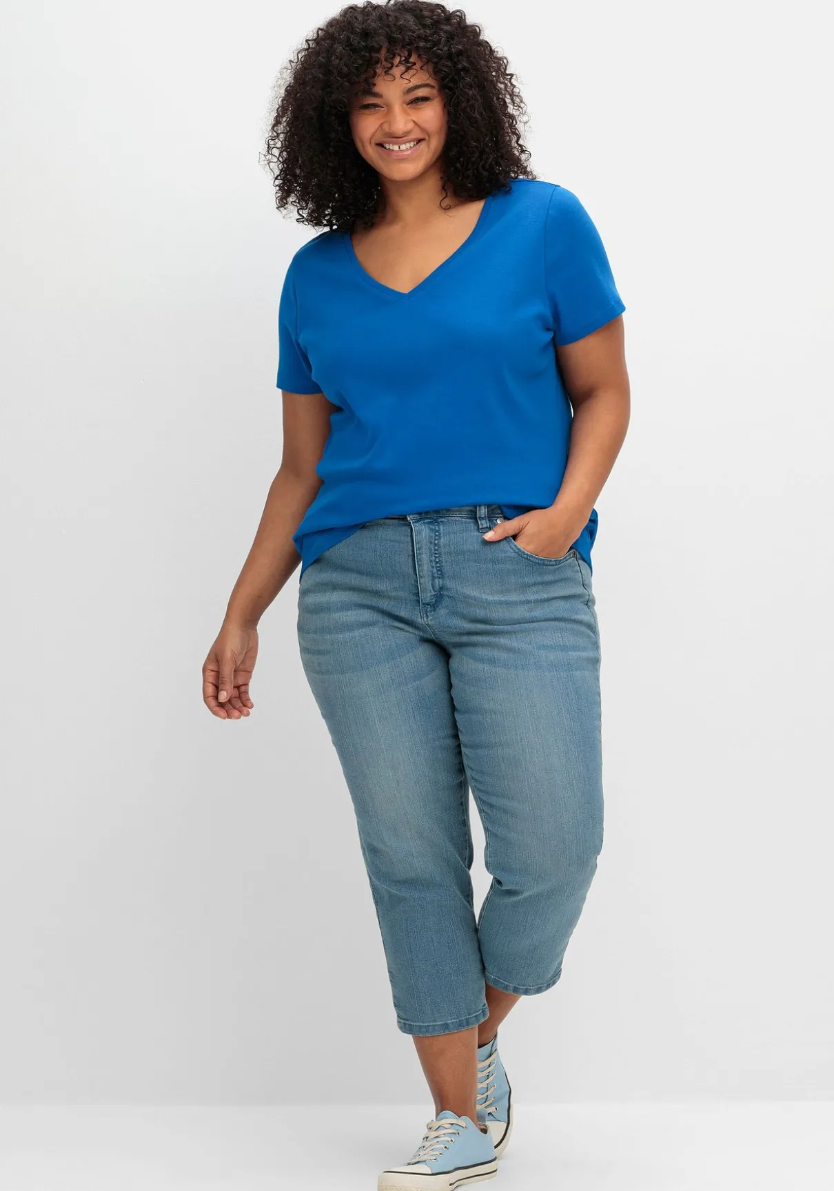 Die fein gerippte, dehnbare Shirtware aus reiner Baumwolle trägt sich sehr angenehm und ist besonders formstabil. Außerdem unterstützt du mit dem Kauf dieses Produkts die Arbeit von „Cotton made in Africa“. Die Initiative leistet Hilfe zur Selbsthilfe durch Handel und will so die Lebensbedingungen afrikanischer Kleinbauern verbessern. sheego cares!