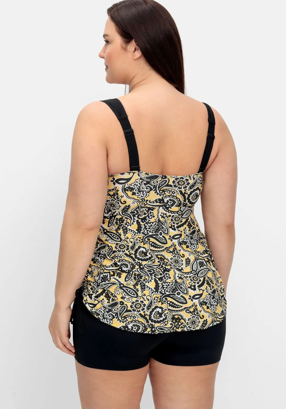 Tankini-Oberteil mit seitlicher Raffung. Das modische Paisleymuster kommt im Mix mit den unifarbenen Kontrastpartien besonders schön zur Geltung. Wattierte Soft-Cups und ein Unterbrustgummi geben der Brust Form, praktisch sind die verstellbaren Träger.