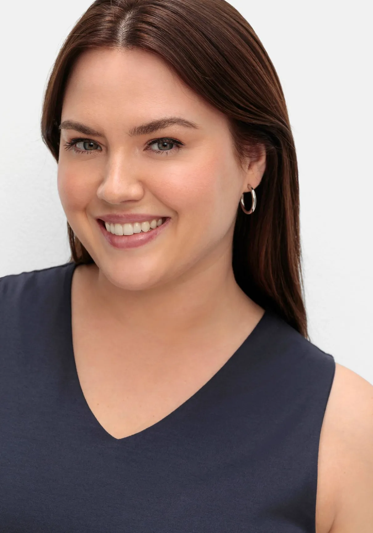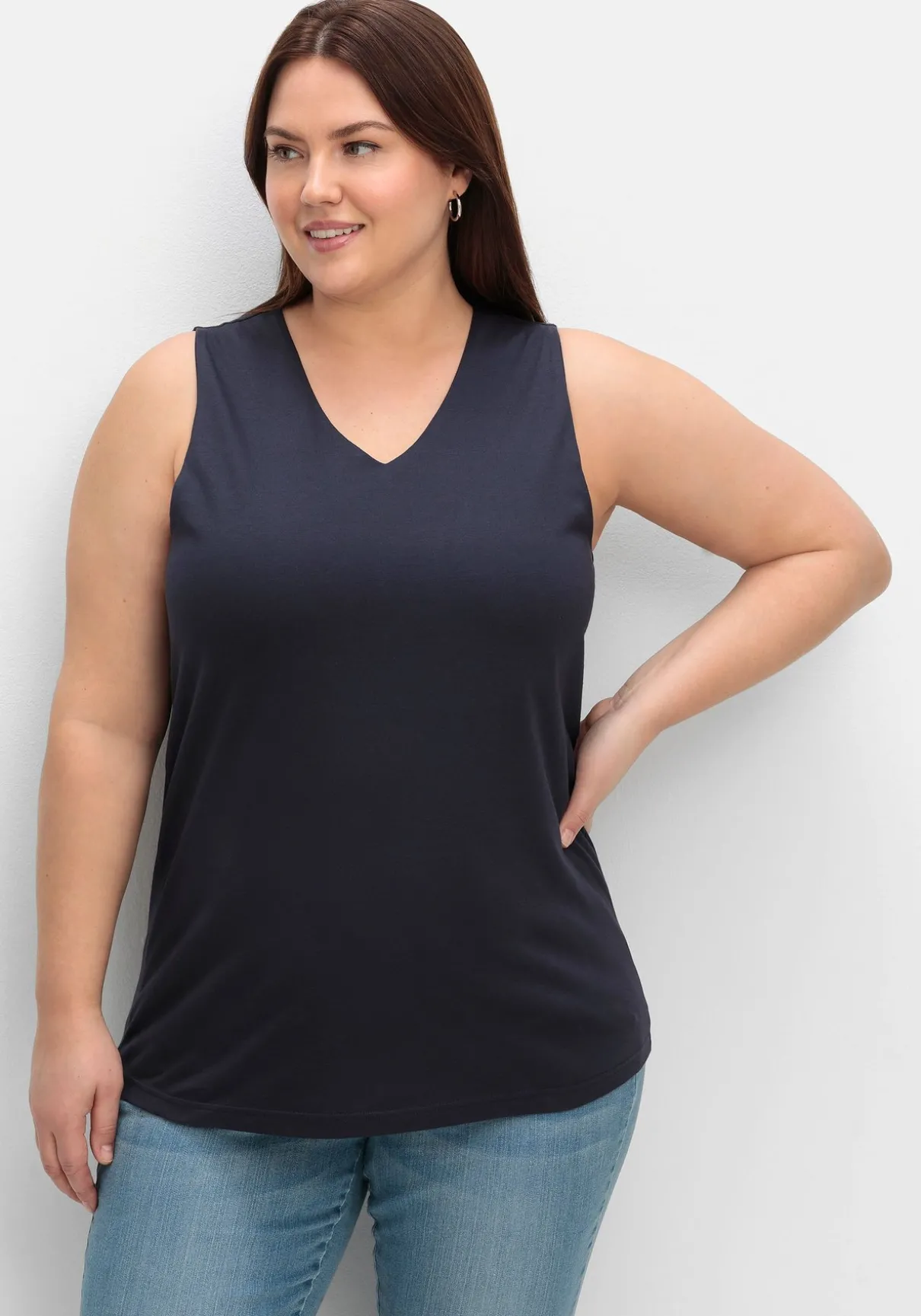 Top mit V-Ausschnitt. Das Top ist vorn doppellagig verarbeitet und fällt so schön glatt über die Figur, die breiten Träger lassen die BH-Träger mühelos verschwinden.
