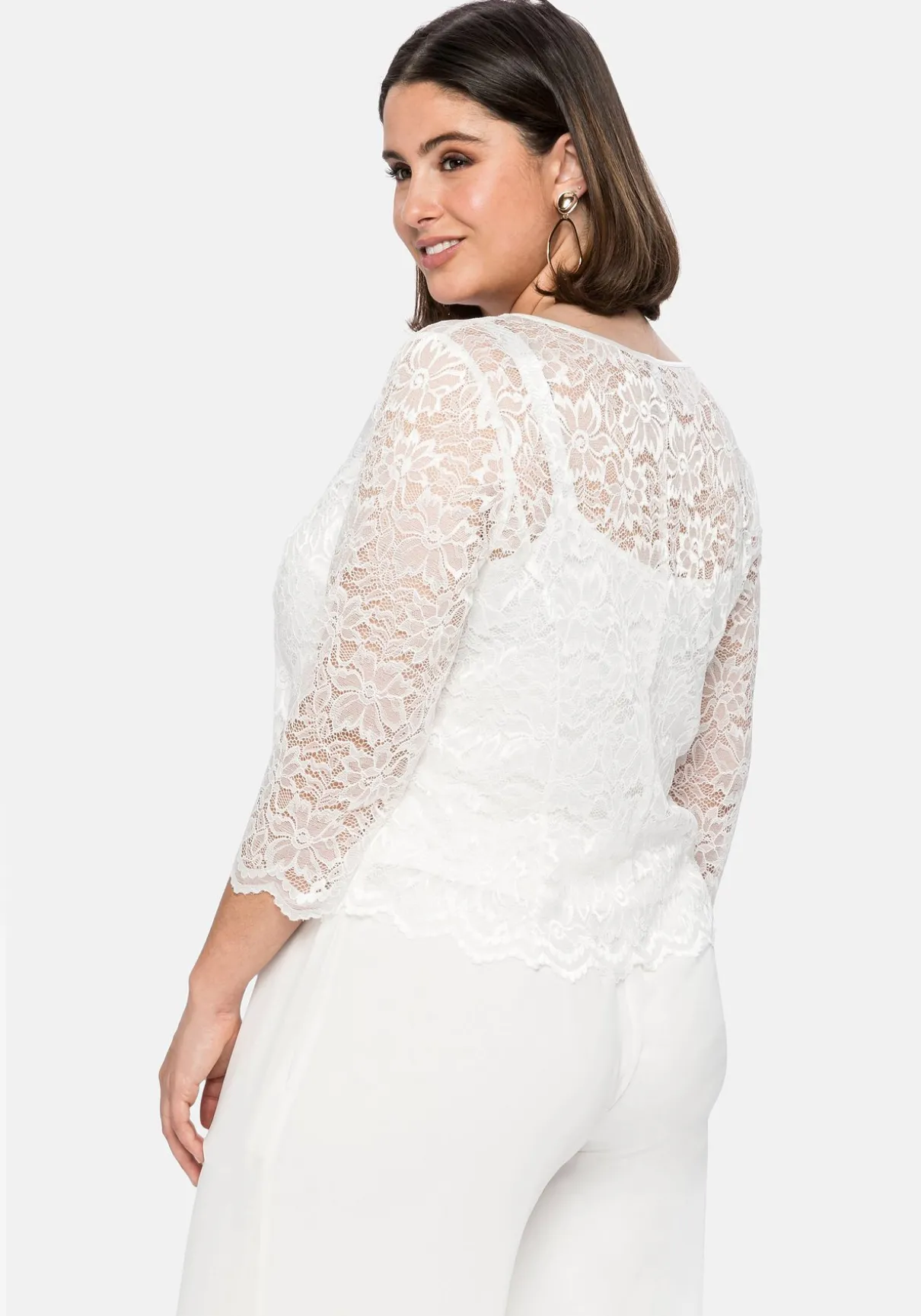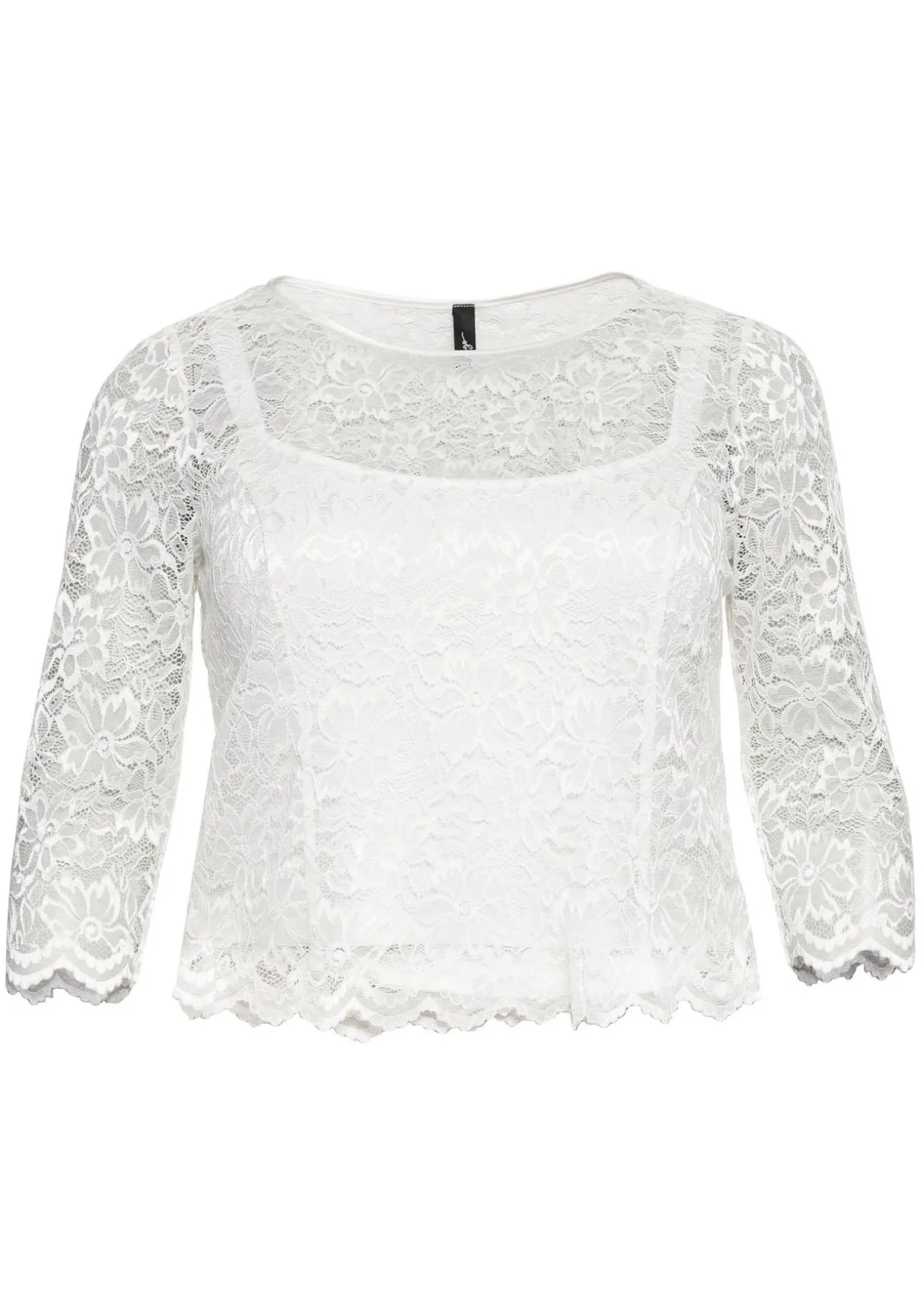 Tunika mit Rundhalsausschnitt. Die fein glänzende, florale Spitze verleiht dem Oberteil verführerische Transparenz, ein Innentop macht den Body blickdicht. Der Wellensaum unterstreicht den romantischen Style. Im Rücken erleichtert ein nahtfeiner Reißverschluss das An- und Ausziehen. Ein festlicher Begleiter für viele Looks von Party bis Hochzeit.