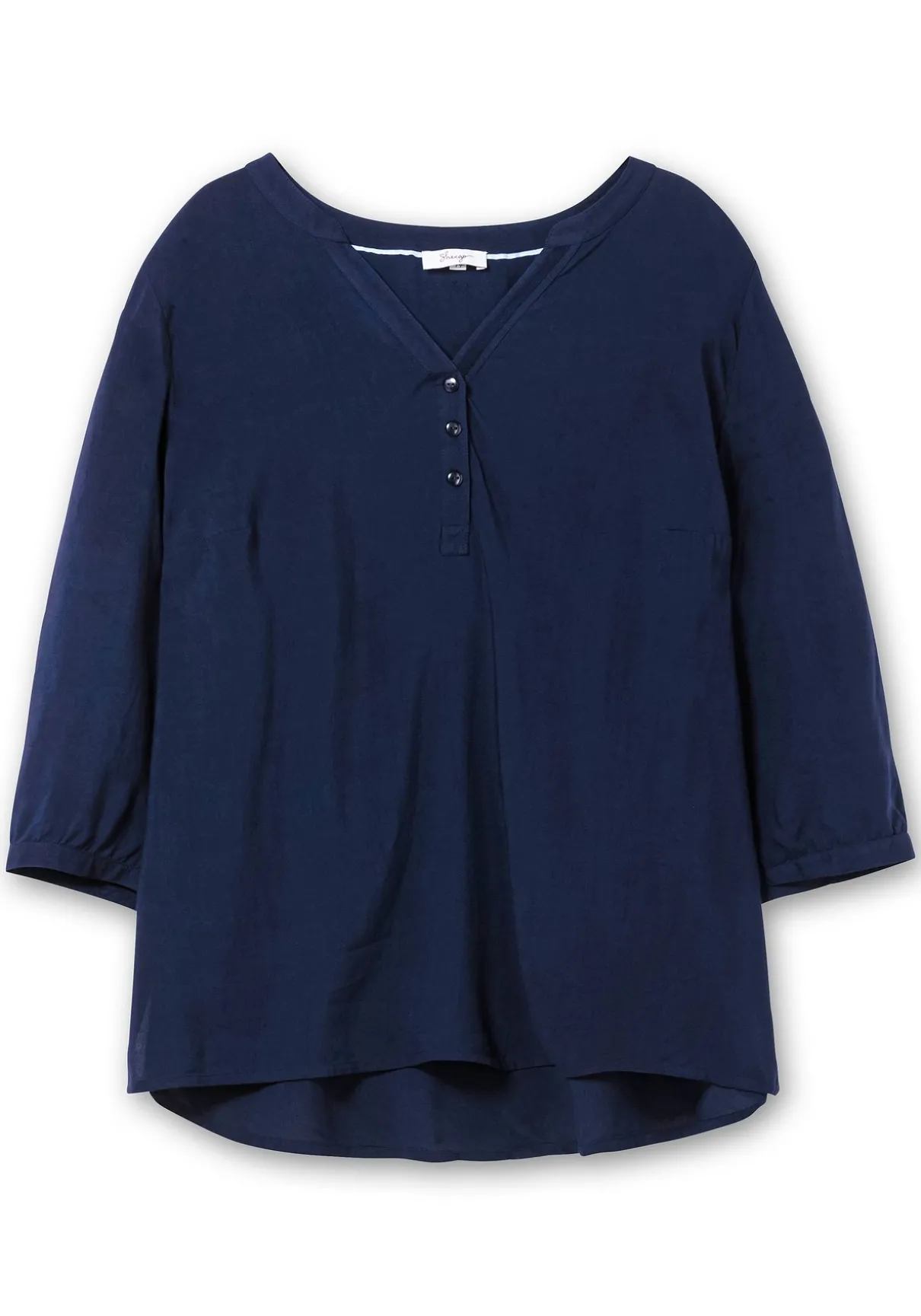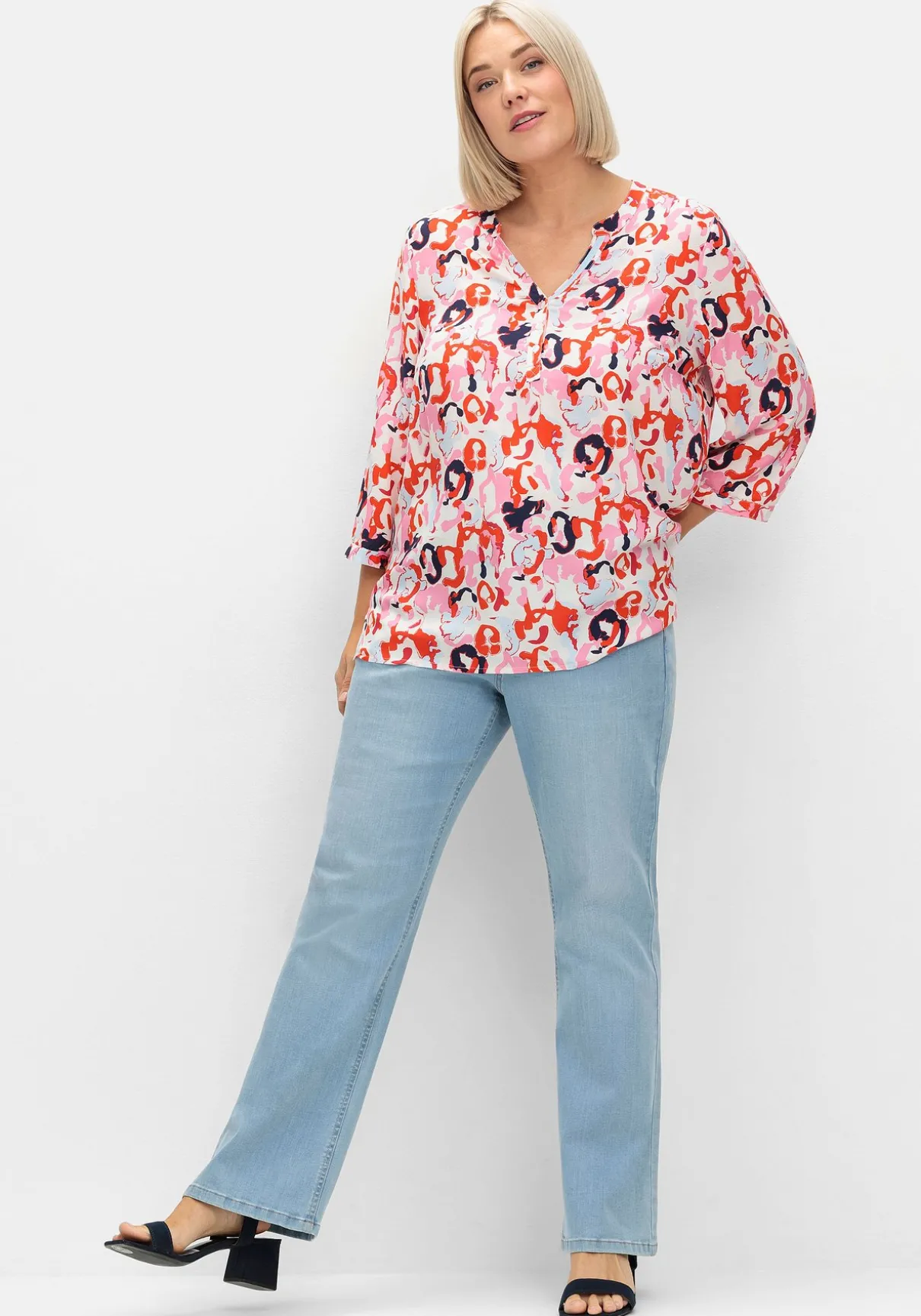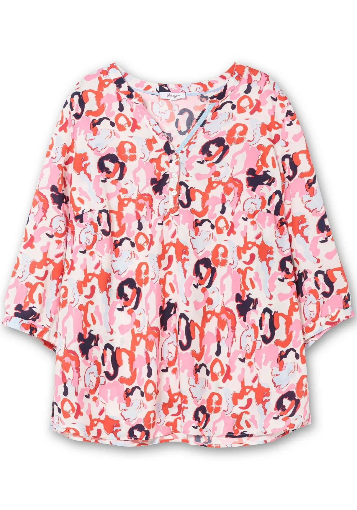 Tuniken im Doppelpack. Das Set besteht aus einer unifarbenen und einer mit abstraktem Alloverprint bedruckten Tunika. Sie sind mit V-Schlitz und Knopfleiste gearbeitet, die 3/4-langen Ärmeln enden mit schmalen, weitenverstellbaren Manschetten. Durch den lockeren Schnitt und die Seitenschlitze am Saum lassen sie sich zu vielen entspannten Looks kombinieren.