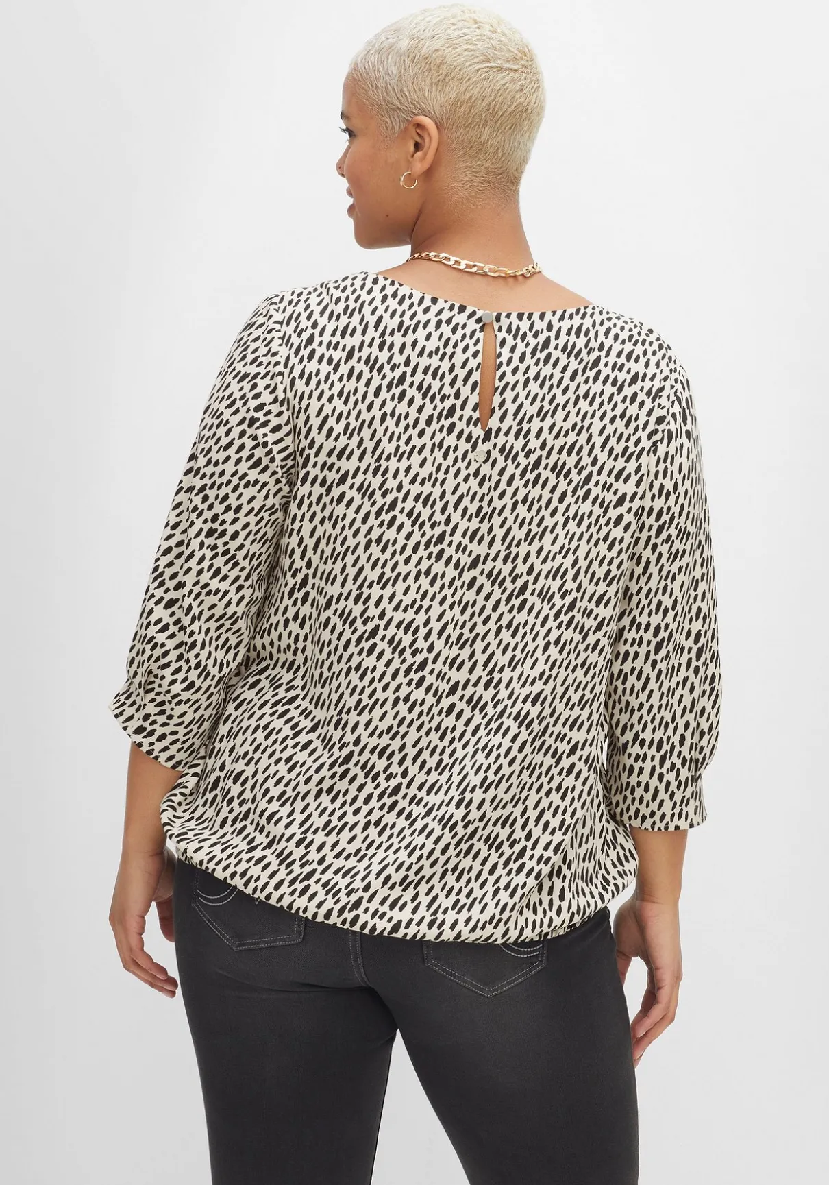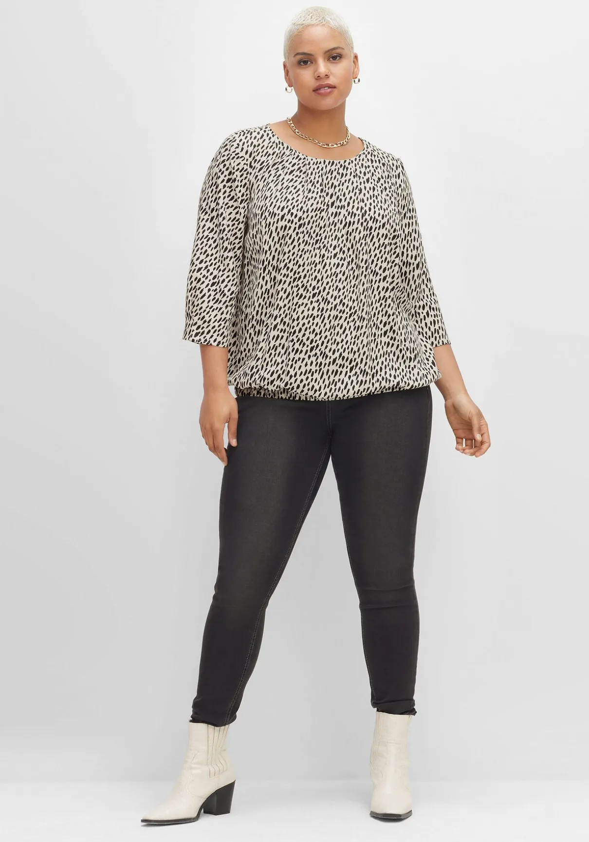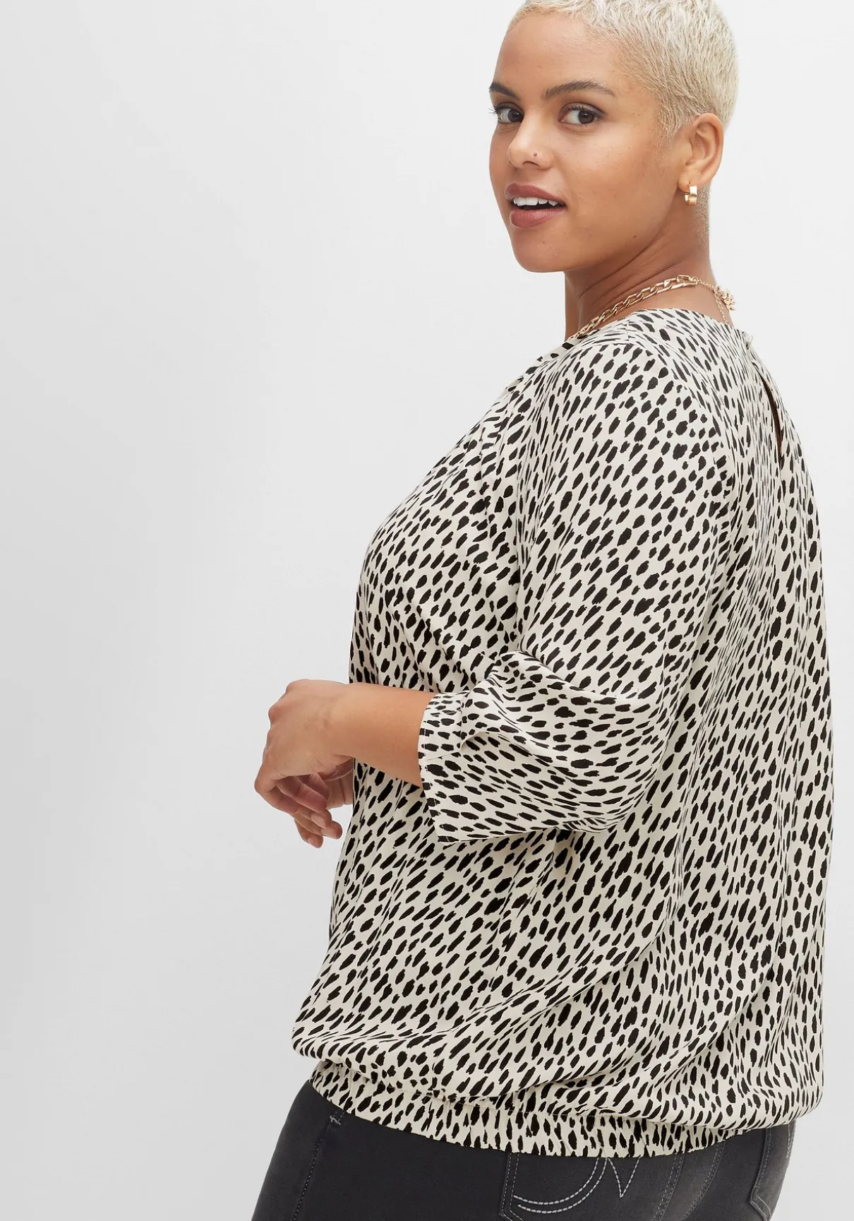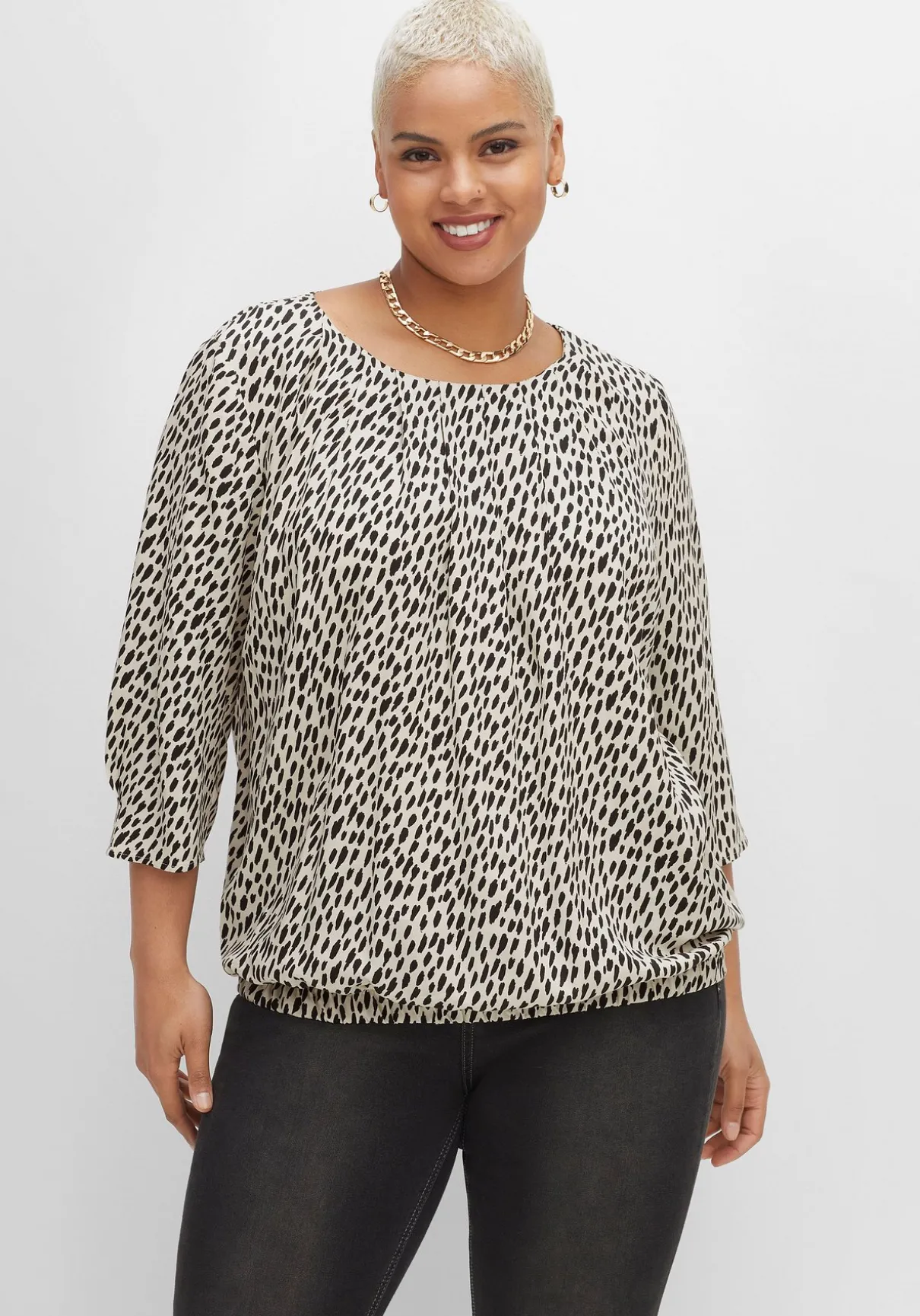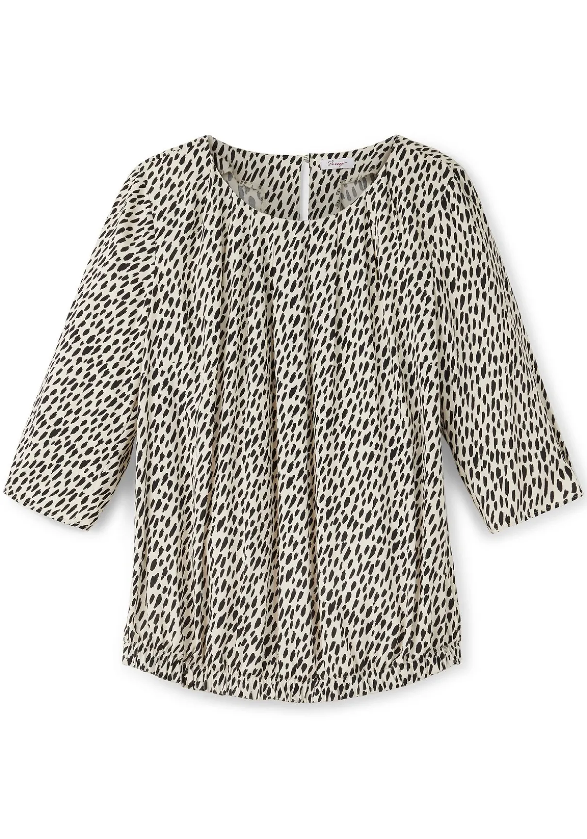 Tunika mit Animalmuster. Zum trendstarken Print ist der leicht gekräuselte Rundhalsausschnitt eine feminine Ergänzung. Hinten ist er mit Schlitz und Knopf gearbeitet, 3/4-lange Ärmel runden den Style ab. Ein Gummizugbund im Saum gibt der Tunika ihren luftigen Fall.