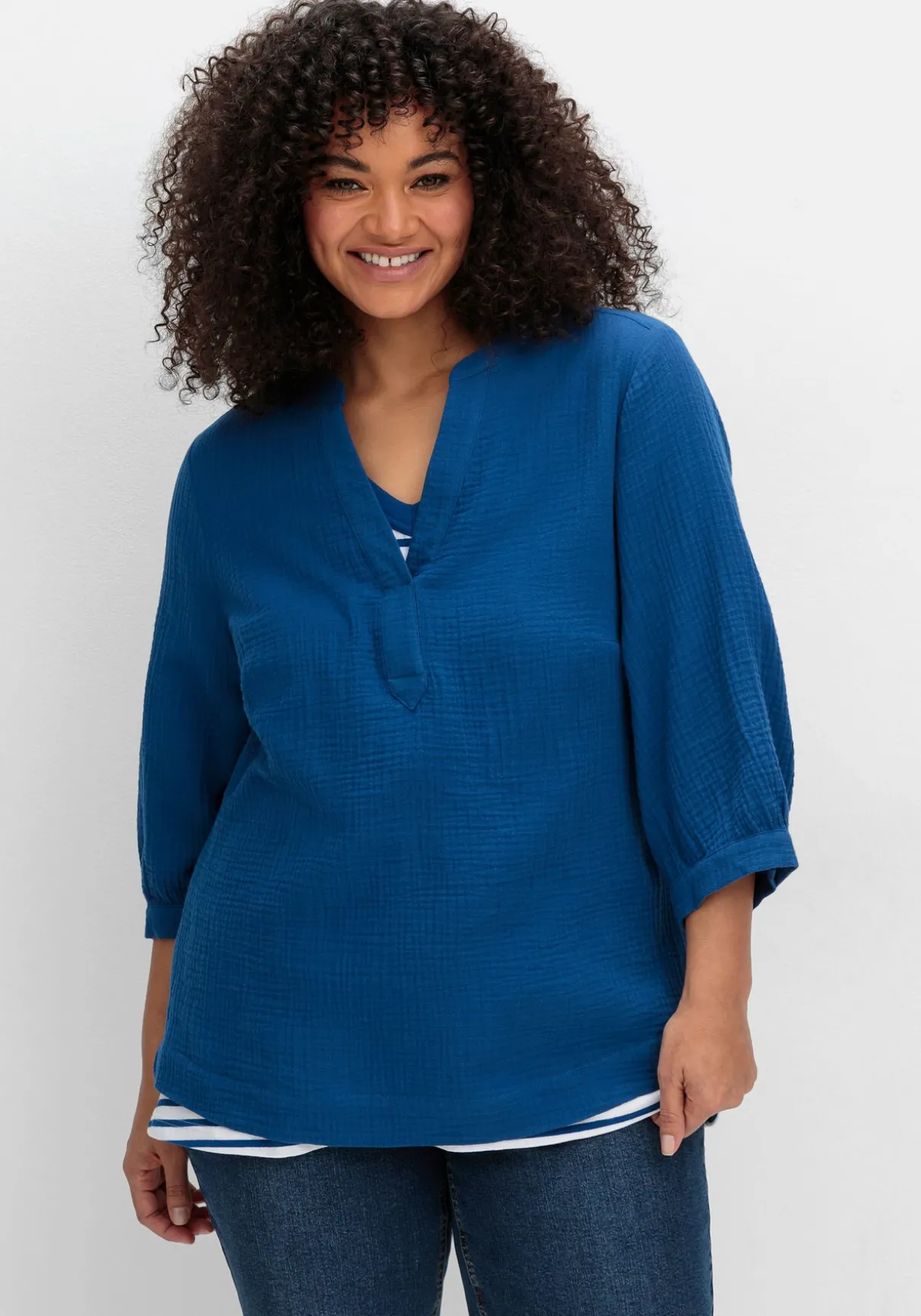 Tunika mit 3/4-Arm und V-Schlitz, aus Musselin