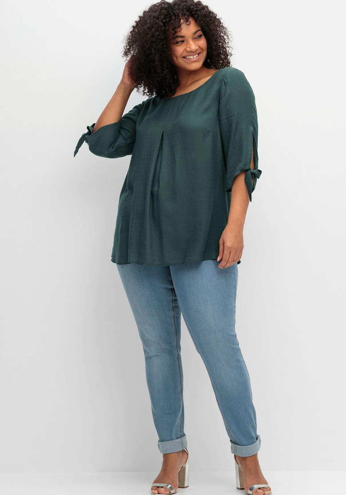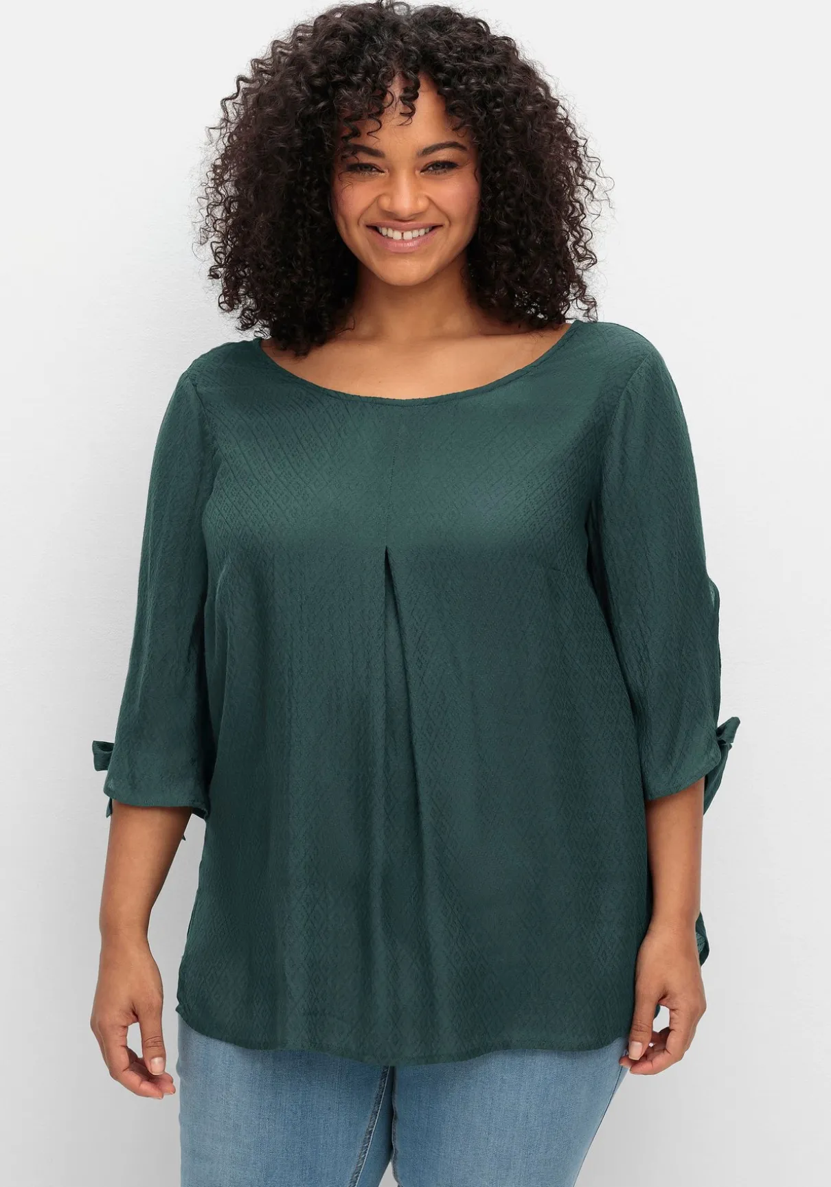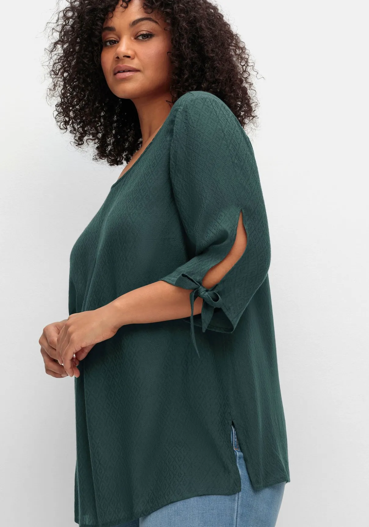 Tunika in strukturierter Viskosequalität. Der bequeme, luftig fallende Style begeistert mit raffinierten Details: So überraschen die 3/4-langen Ärmel mit langem Schlitz und Bindeband. Vorn ist die Tunika mit einem weit gefassten Rundhalsausschnitt gearbeitet, hinten lässt der V-Ausschnitt den Blick auf den Nacken frei. Die Kellerfalte gibt dem Fit entspannte Weite, auch die seitlichen Schlitze sorgen für Bewegungsfreiheit.