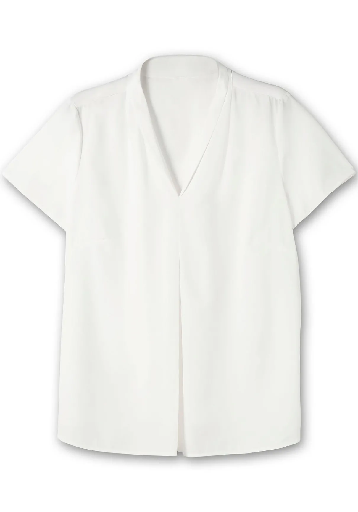 Tunika mit kurzen Ärmeln. Durch die Kellerfalte unterhalb des V-Ausschnitts erhält sie zusätzliche Weite. Auch die abgerundeten Seitenschlitze bieten optimale Bewegungsfreiheit.