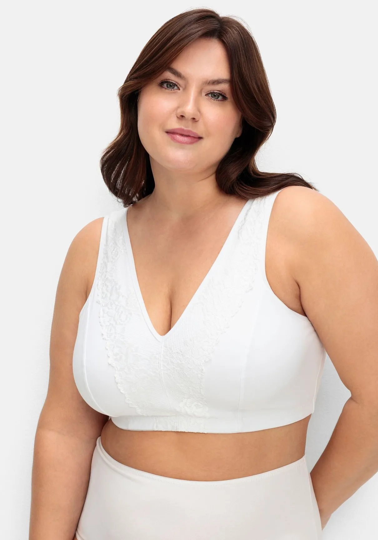 BH ohne Bügel, in verschlussloser Bustier-Form. Für eine romantische Note sorgt die feminine Spitzenborte an Ausschnitt und Trägern. Einen optimalen Sitz versprechen die breiten Träger sowie der eingearbeitete, haltgebende Unterbrustgummi. Unser Tipp: Trag den BH unter einem tiefen V-Ausschnitt – so blitzt die Spitze dezent heraus.