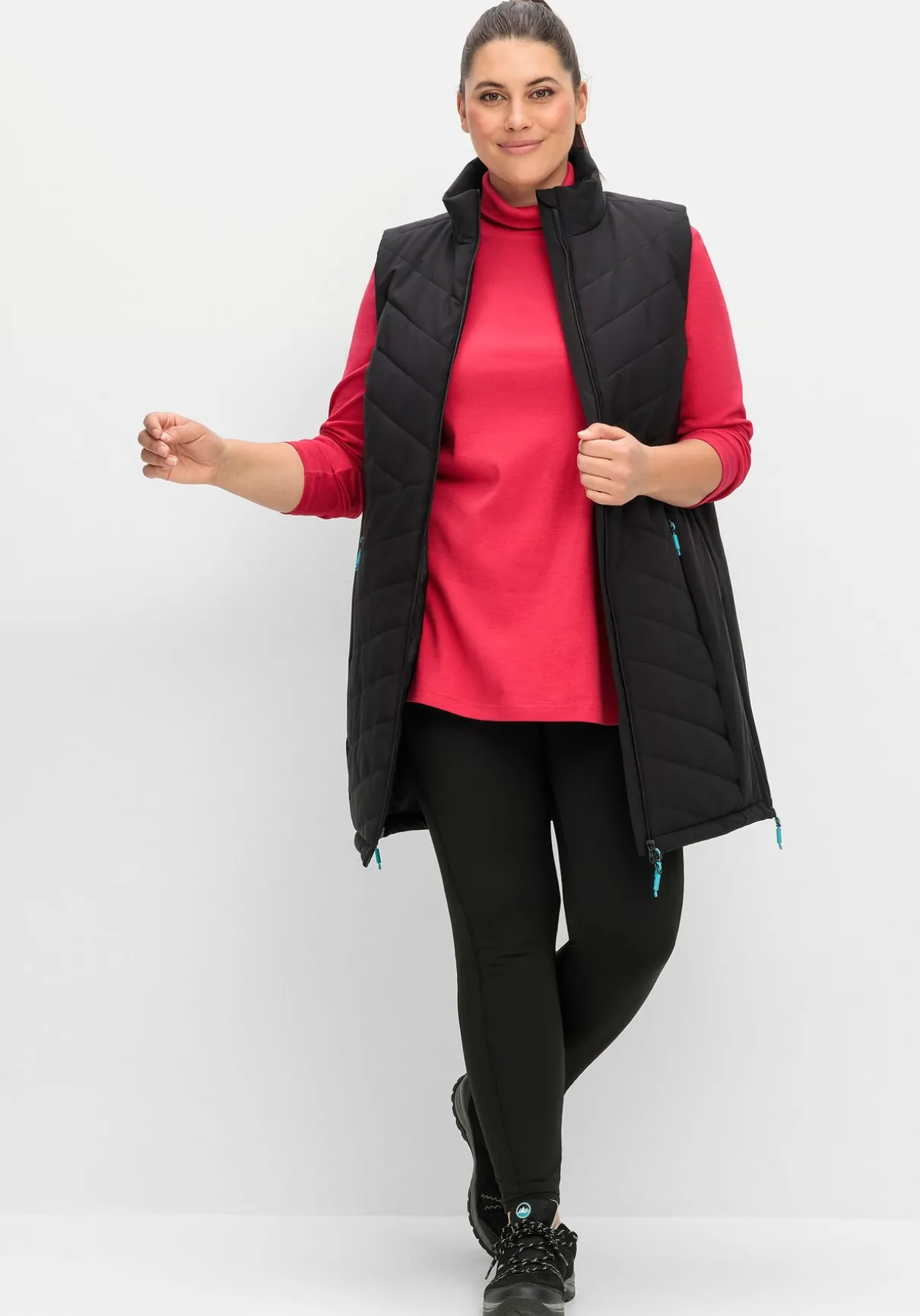 Die Leggings sind figurnah geschnitten, Teilungsnähte wirken optisch streckend.