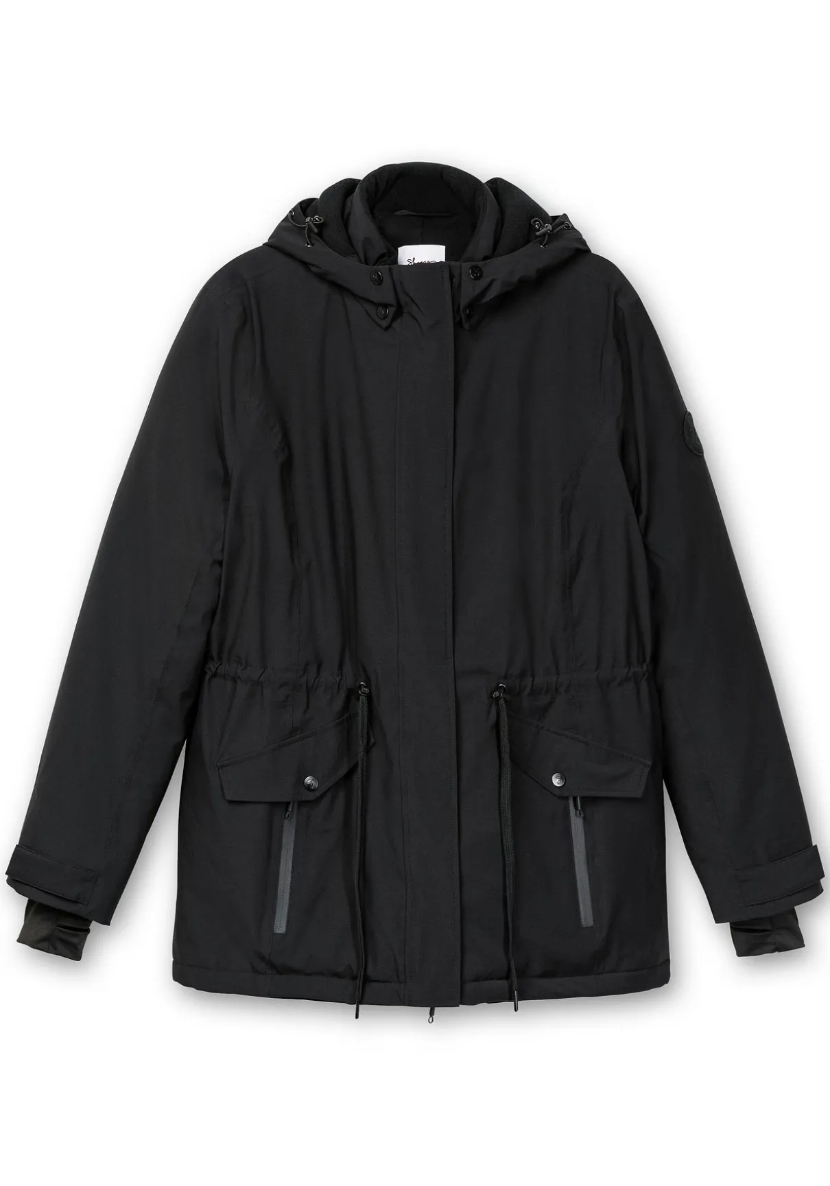 Outdoorjacke in Longform. Durchdachte Details machen die Jacke zum zuverlässigen Begleiter durch die kalte Jahreszeit: So hält die abnehmbare, weitenverstellbare Kapuze durch das Fleecefutter kuschelig warm, auch der Innenkragen ist mit Fleece gefüttert. Der wasserdichte 2-Wege-Reißverschluss ist zusätzlich mit Windschutzblende und Kinnschutz ausgestattet. Der Ärmel endet mit einem elastischen Daumenloch-Einsatz, dazu kommen vier mit Fleece gefütterte Fronttaschen sowie eine Innentasche mit Kopfhörerausgang.