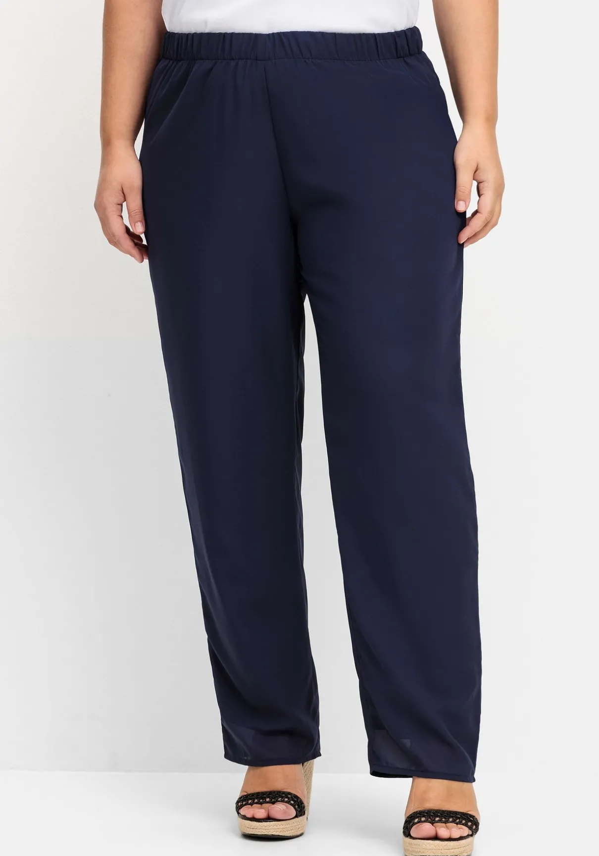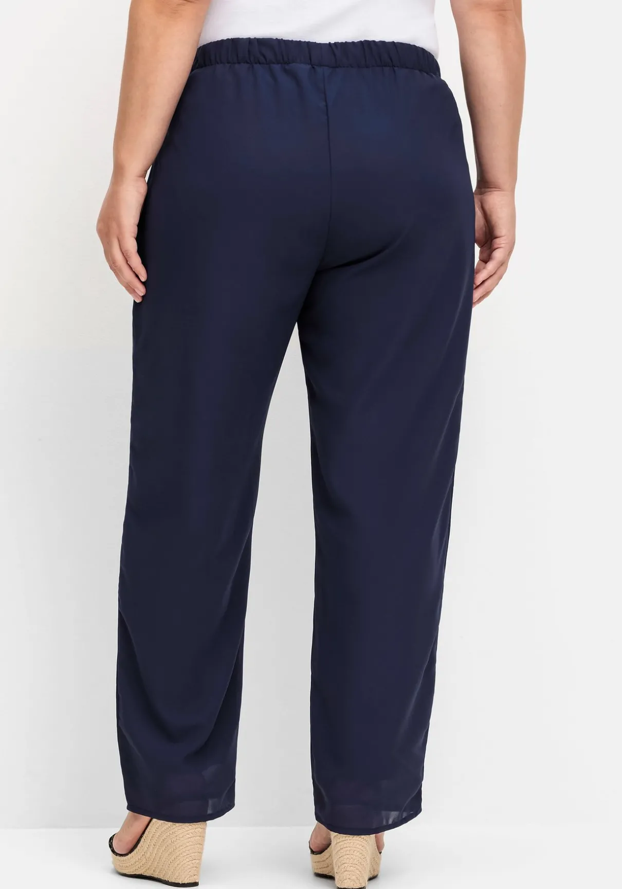 Hose in weiter Form. Das luftige, leichte Material trägt sich durch das Futter sehr angenehm. Ein rundum elastischer Bund sorgt für den bequemen Sitz in der Taille.