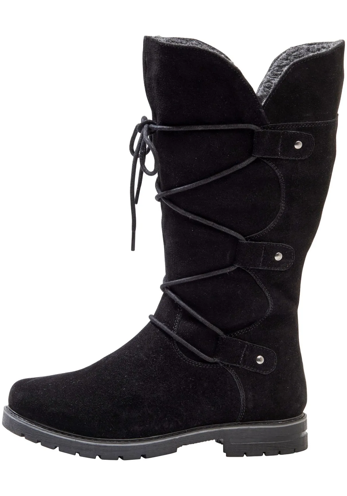 Das Veloursleder ist mit einem Fellimitat warm gefüttert.