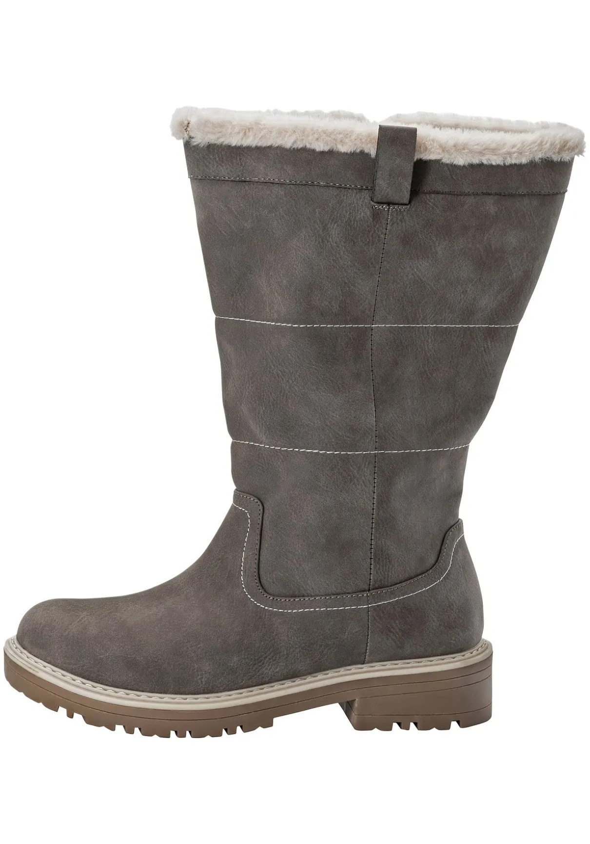 Der Stiefel ist durch das Veloursleder, das mit weichem Fellimitat gefüttert ist, besonders wärmend.