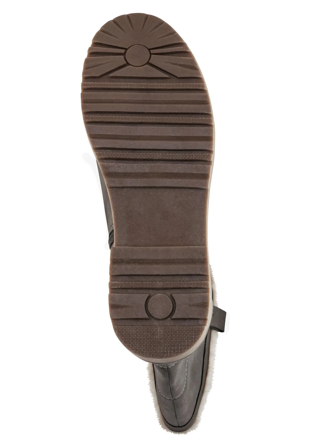 Weitschaftstiefel in Velourslederoptik. Ein Reißverschluss an der Innenseite erleichtert das Anziehen. Besonders praktisch präsentiert sich die herausnehmbare Innensohle. Die profilierte Sohle und der ca. 4,5 cm hohe Absatz sorgen für sicheren Halt.